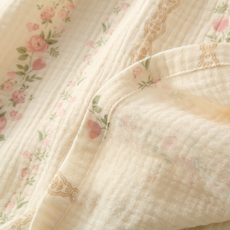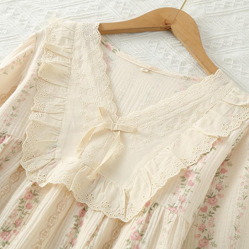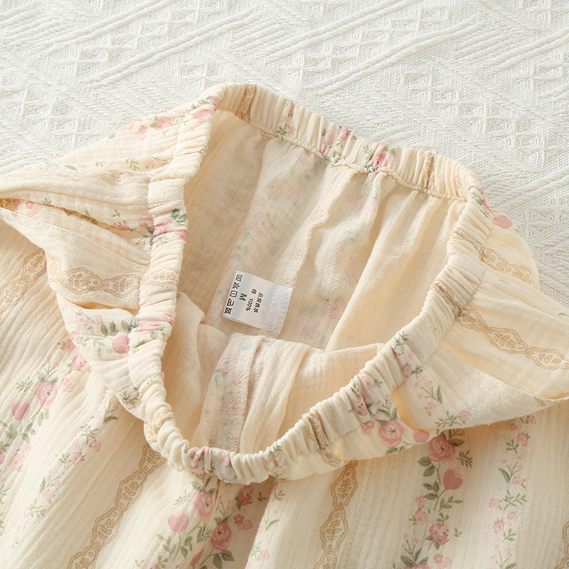 温柔女碎花纯棉棉纱宽松双层纱布家居服睡衣套装秋季长袖居家外穿