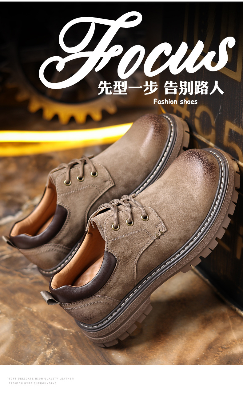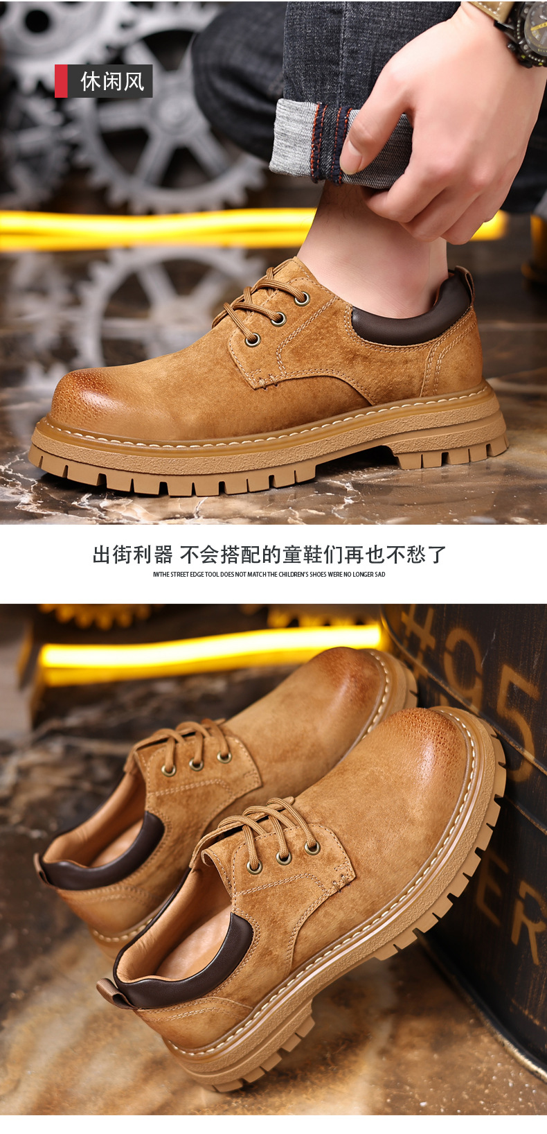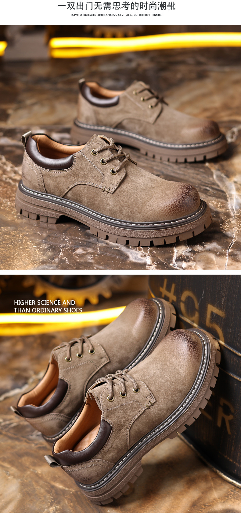 2024新款工装男鞋猪皮透气休闲鞋厚底圆头舒适百搭牛筋底男鞋厚底