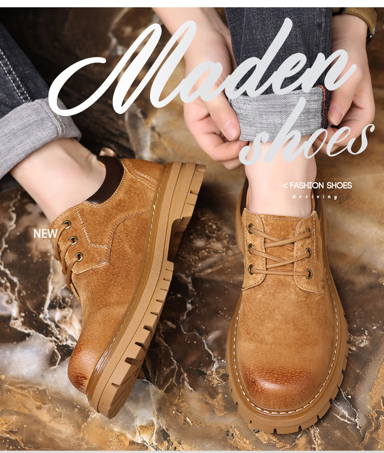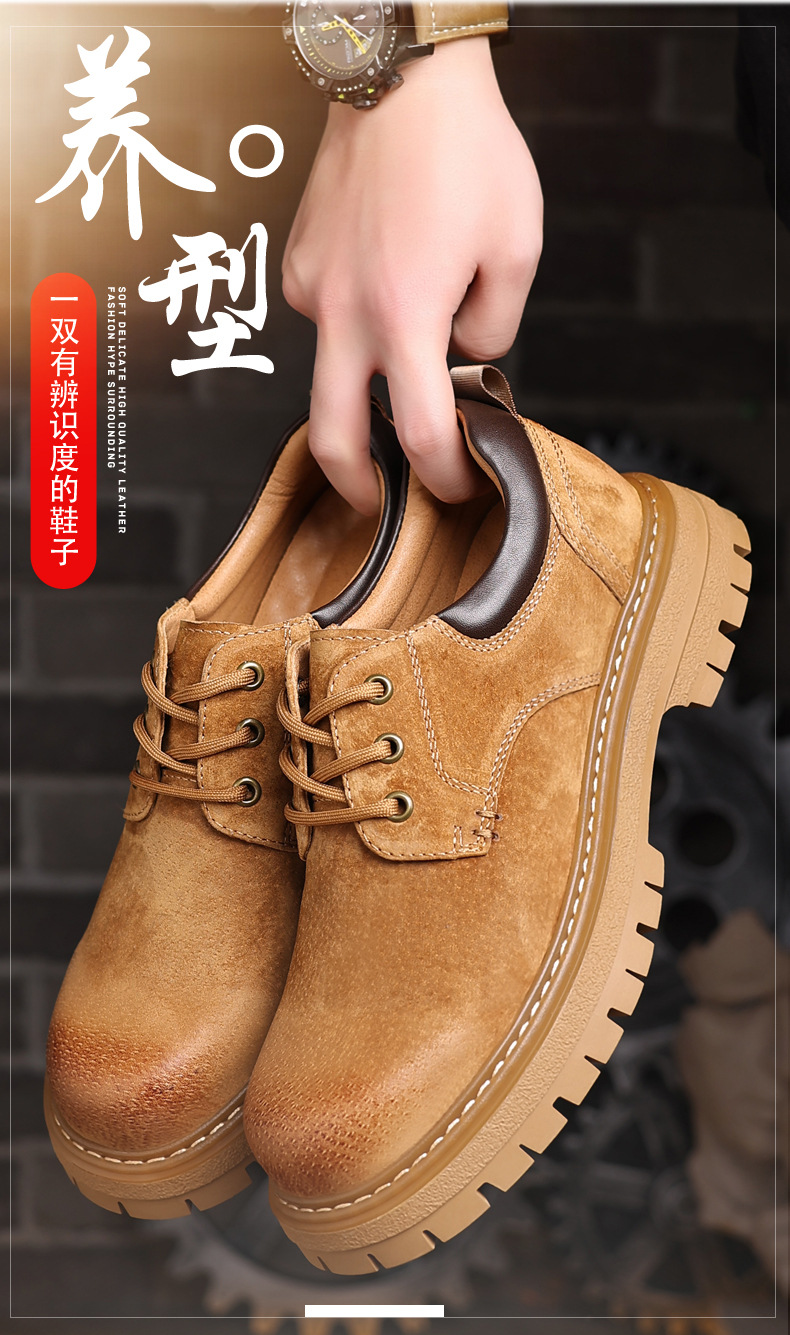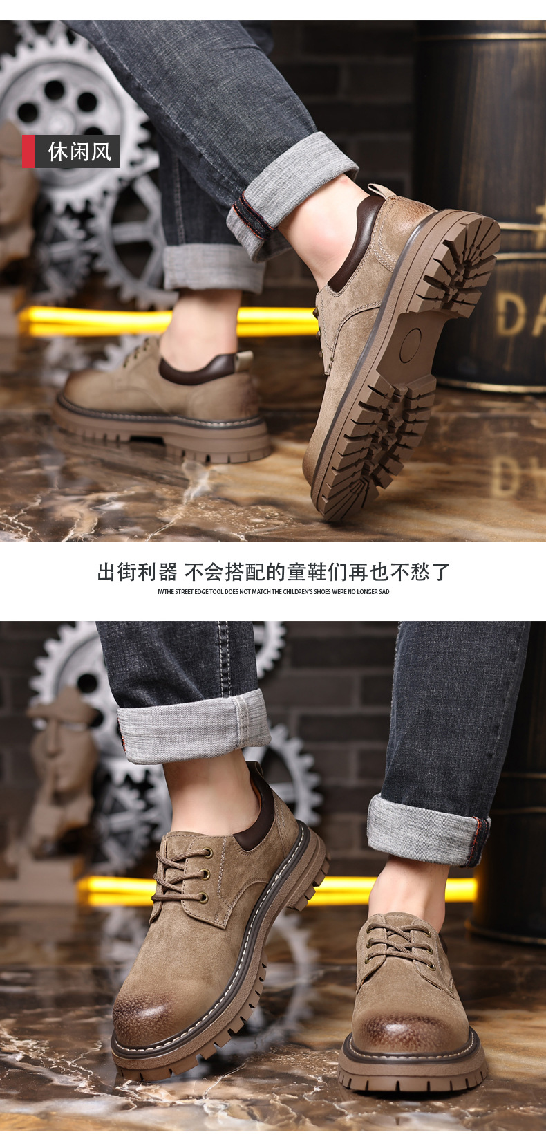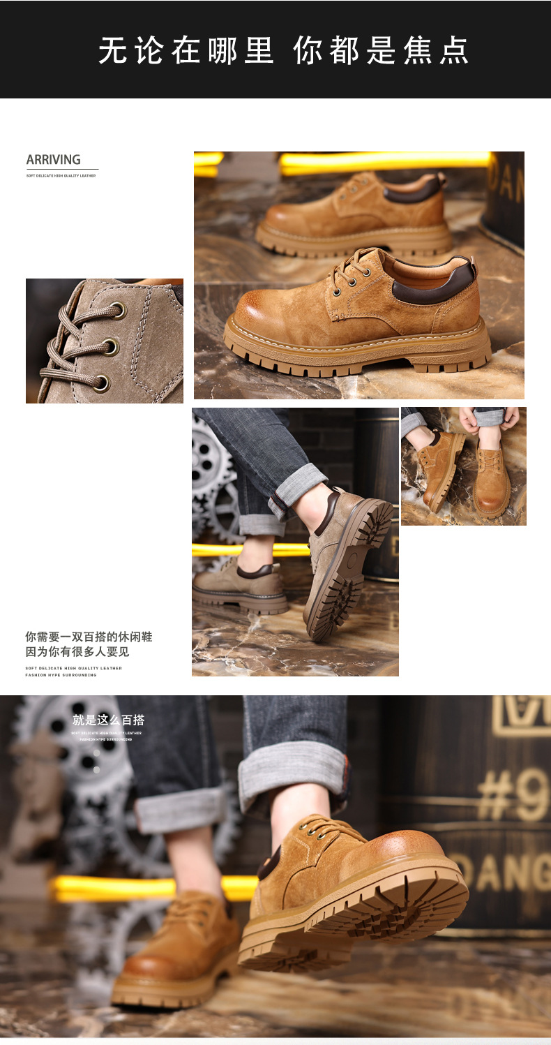 2024新款工装男鞋猪皮透气休闲鞋厚底圆头舒适百搭牛筋底男鞋厚底