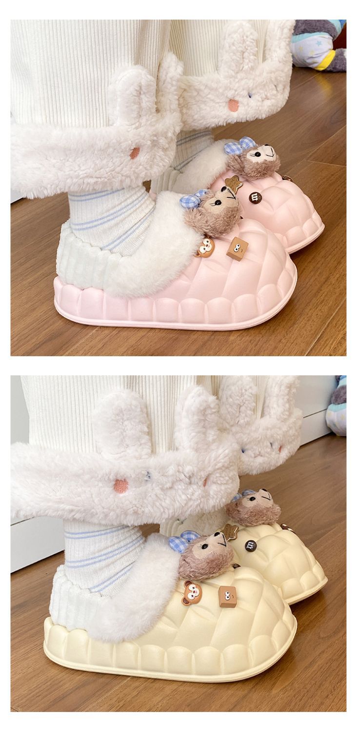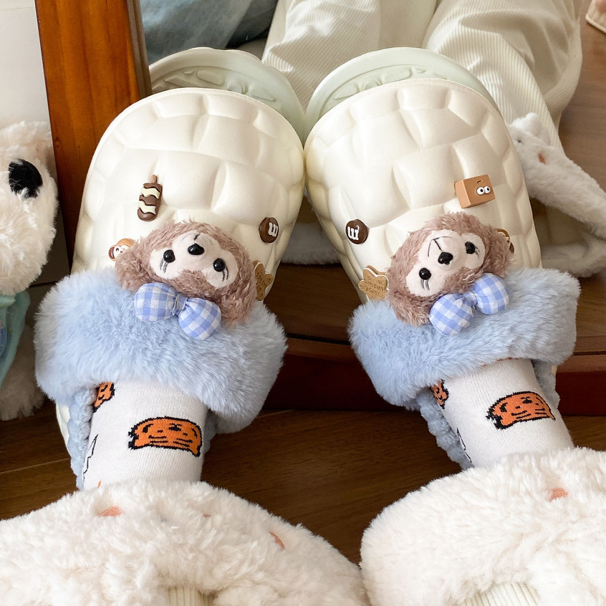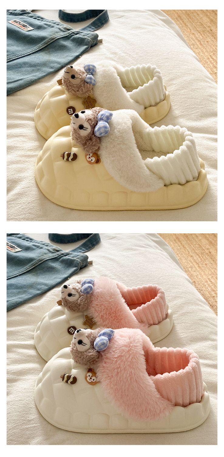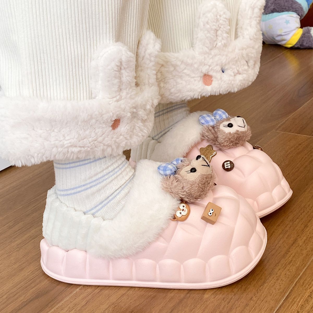 可拆卸时尚宿舍棉鞋女EVA厚底加绒秋冬可爱熊仔外穿保暖防水棉拖