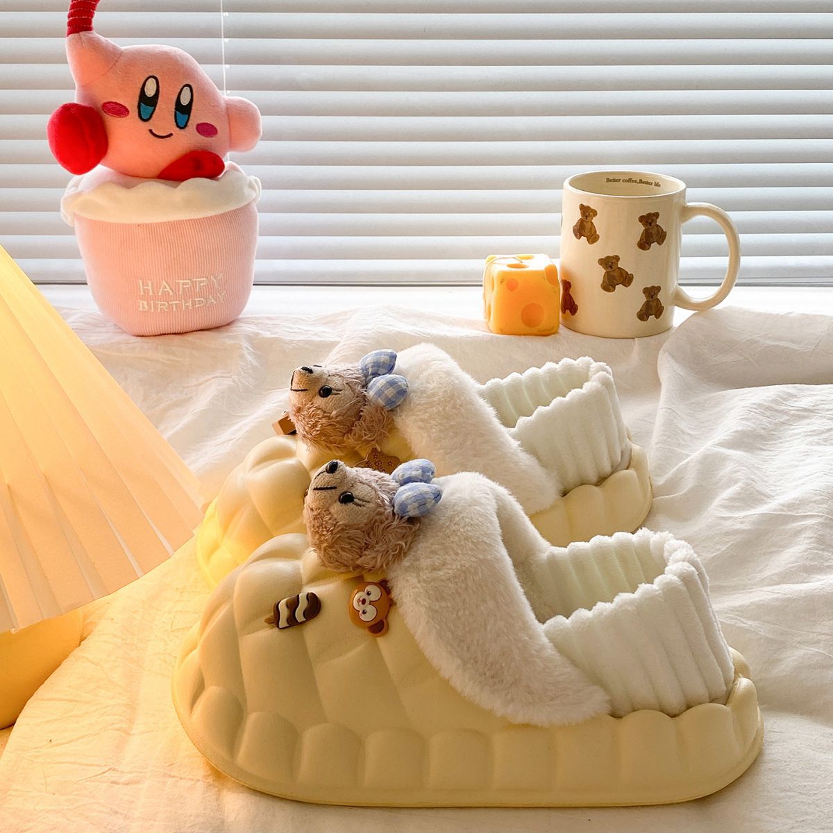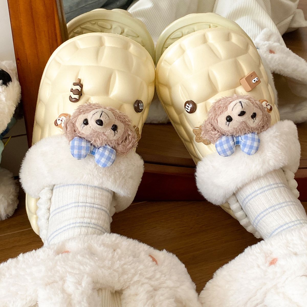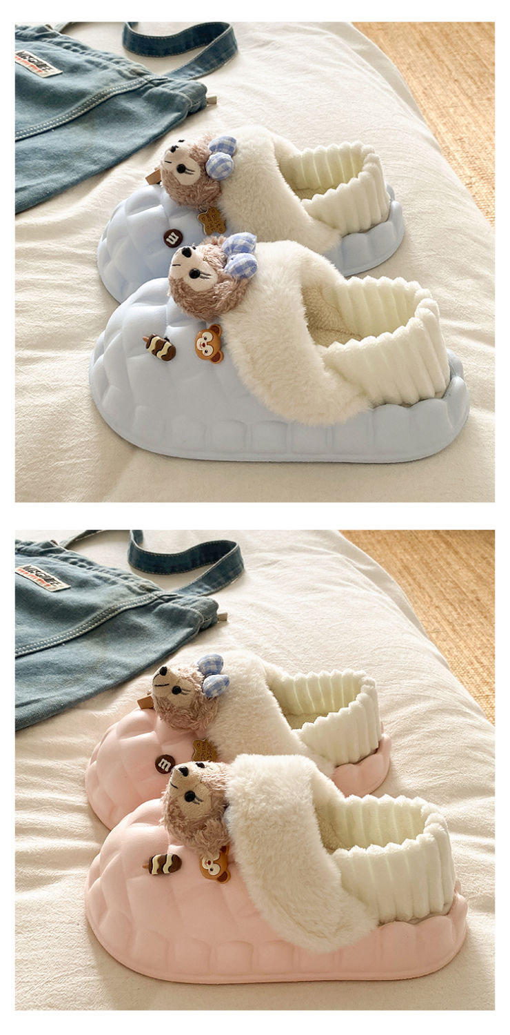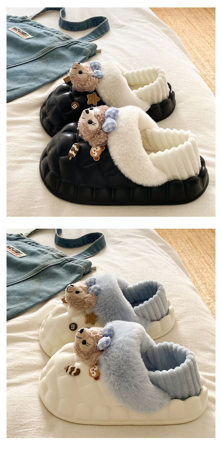 可拆卸时尚宿舍棉鞋女EVA厚底加绒秋冬可爱熊仔外穿保暖防水棉拖
