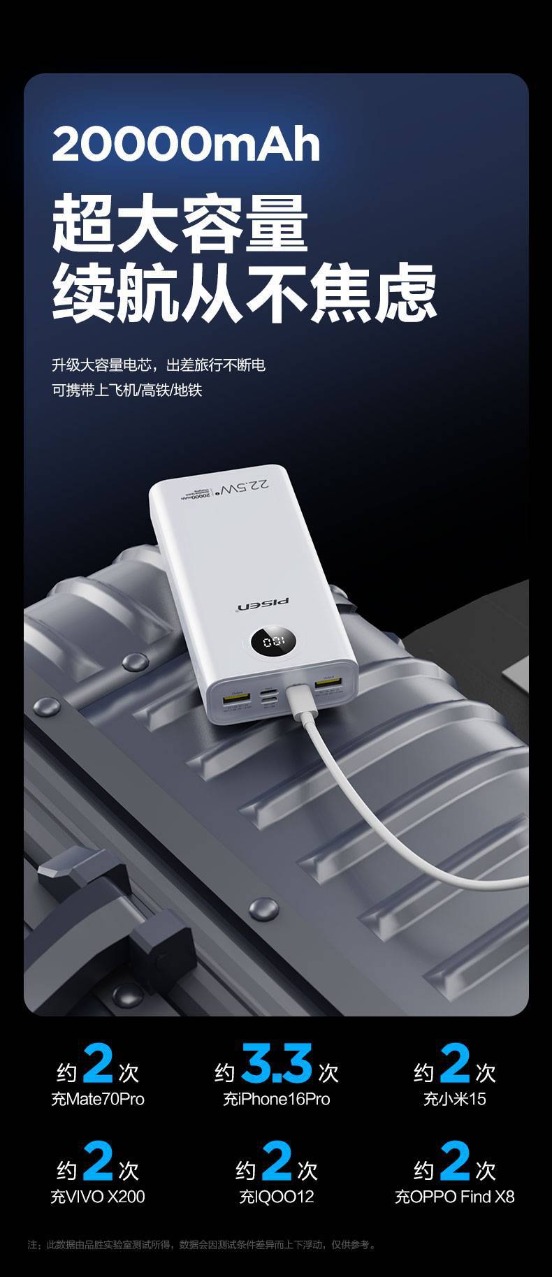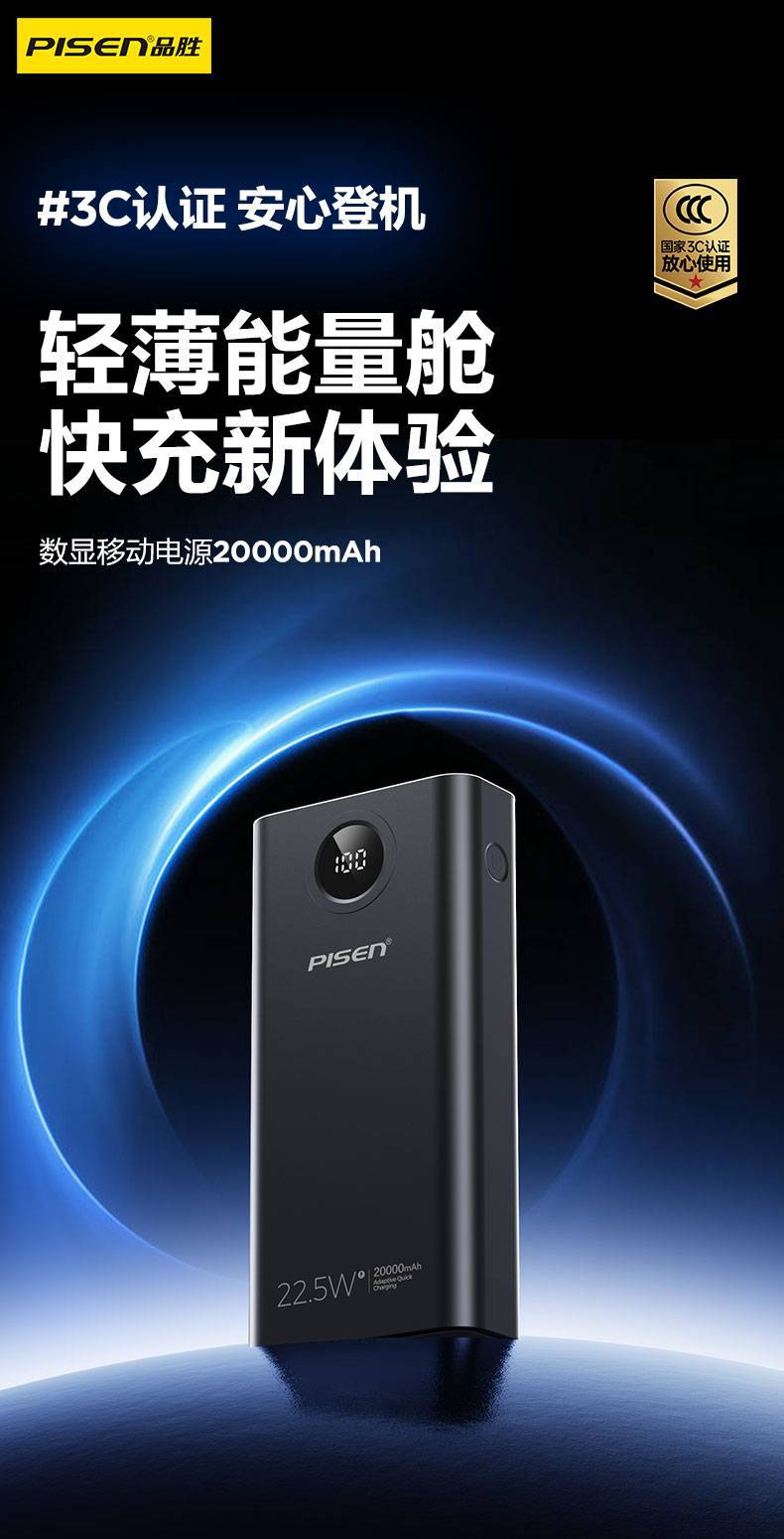 品胜10000毫安充电宝PD22.5w快充小巧便携大容量数显移动电源批发