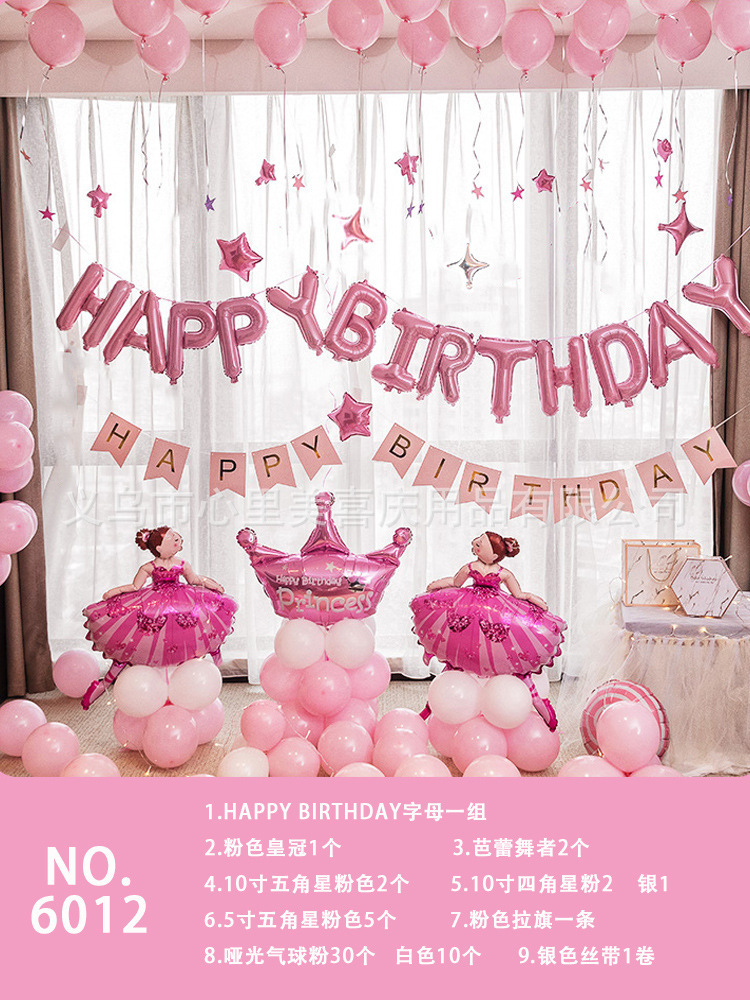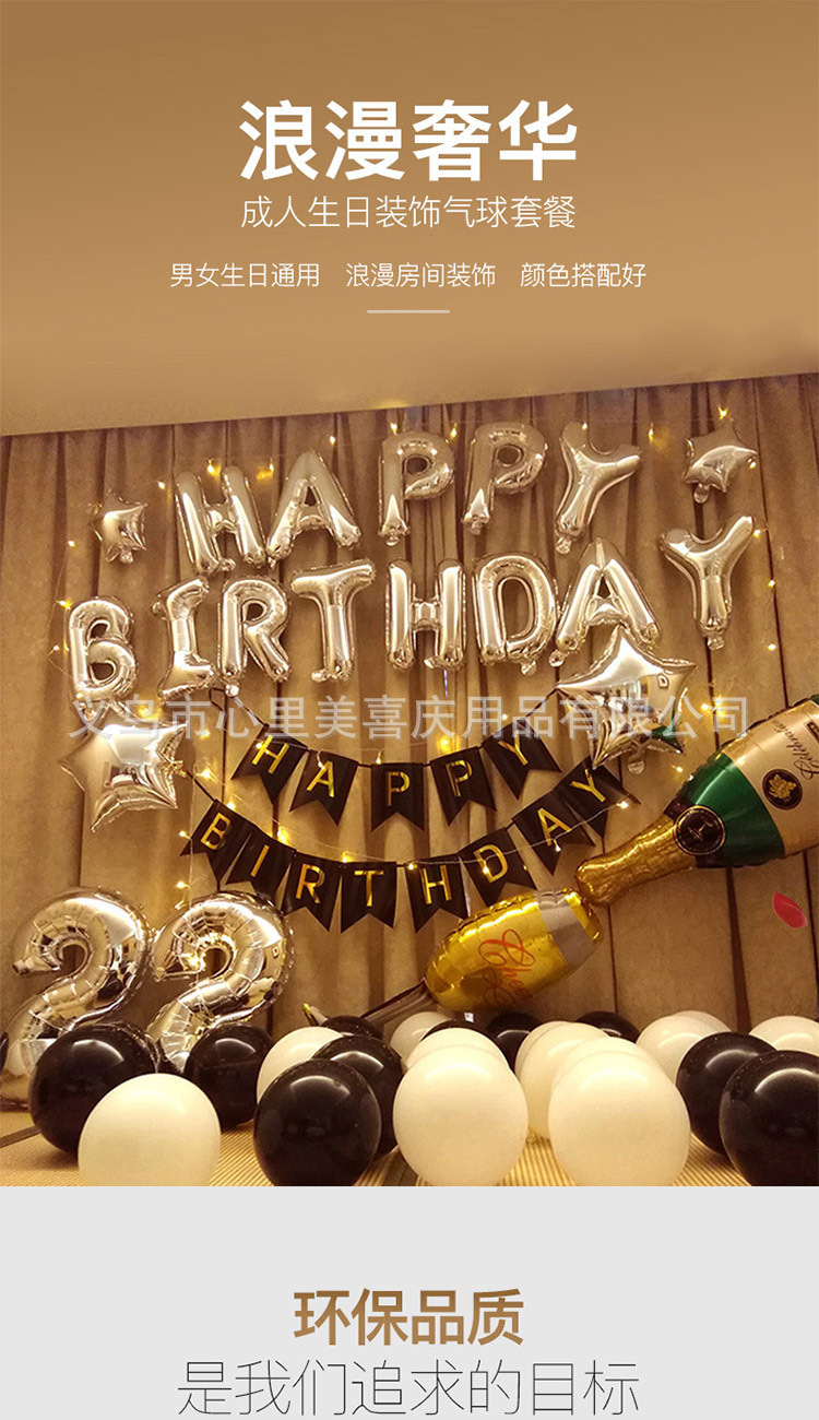 圆形生日派对场景布置装饰气球套装儿童玩具铝膜气球字母数字