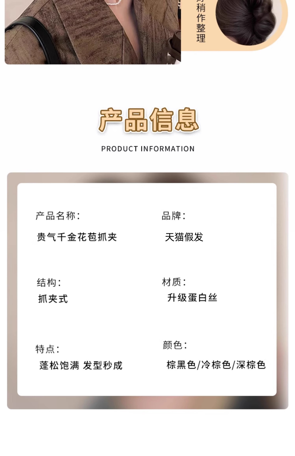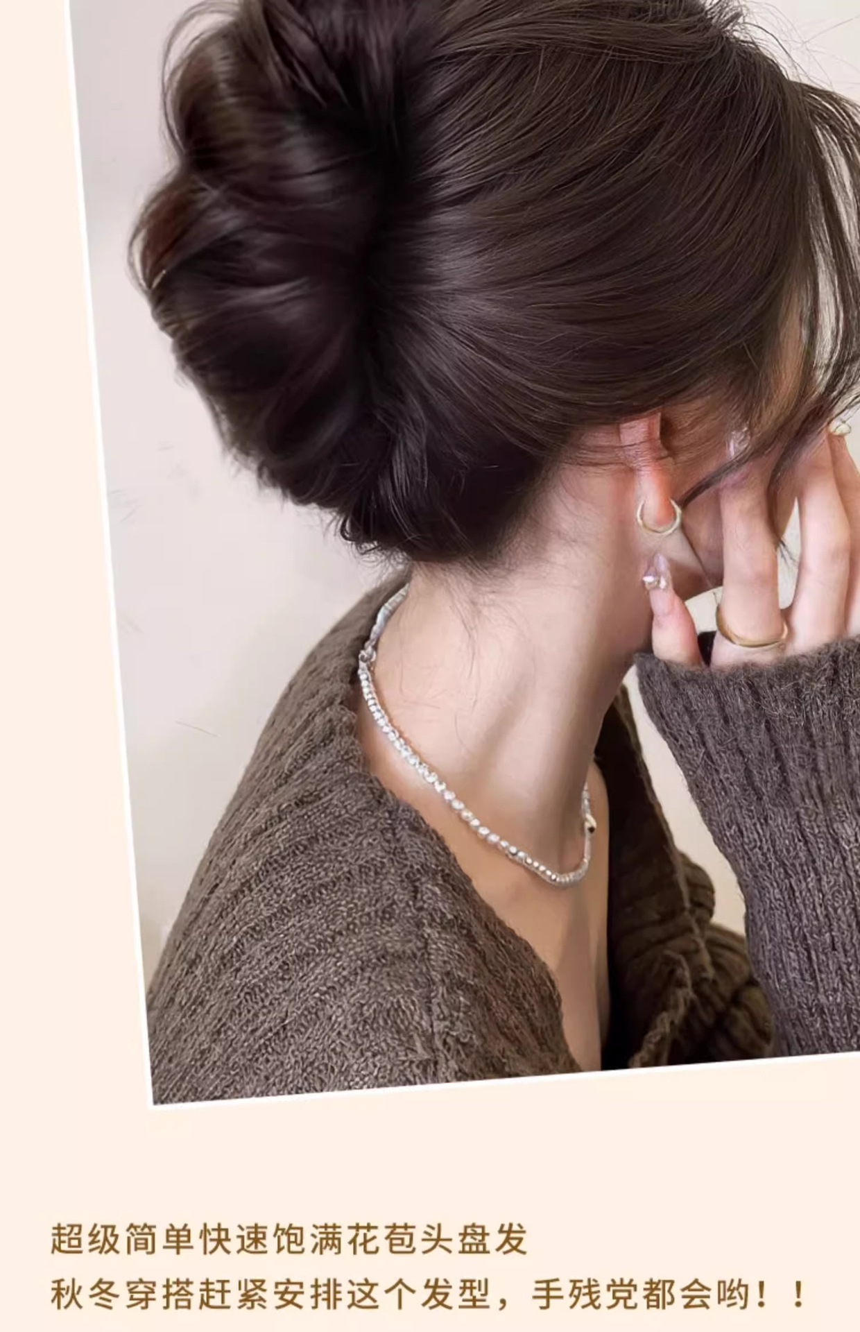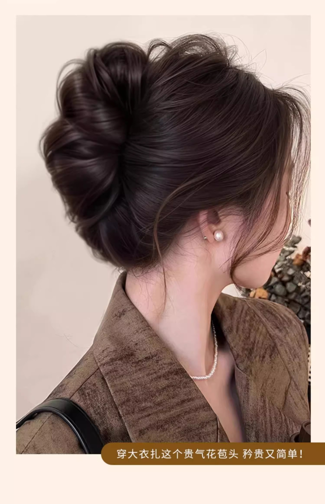 丸子头假发千金花苞头抓夹盘发神器仿真发网红高颅顶新中式假发圈