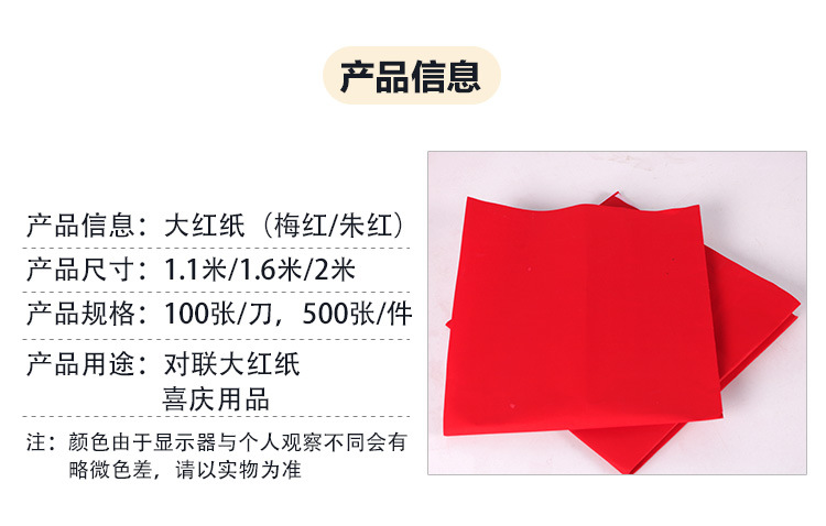 厂家现货大红纸结婚专用梅红封井盖纸红包纸剪纸婚庆专用对联纸