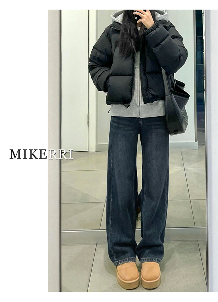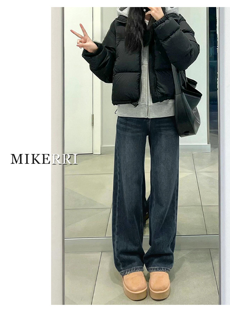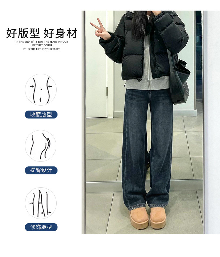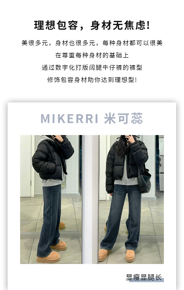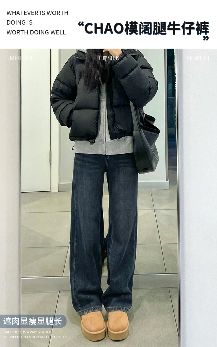 复古阔腿牛仔裤女秋季新款大码胖mm宽松显瘦梨形身材窄版直筒裤子