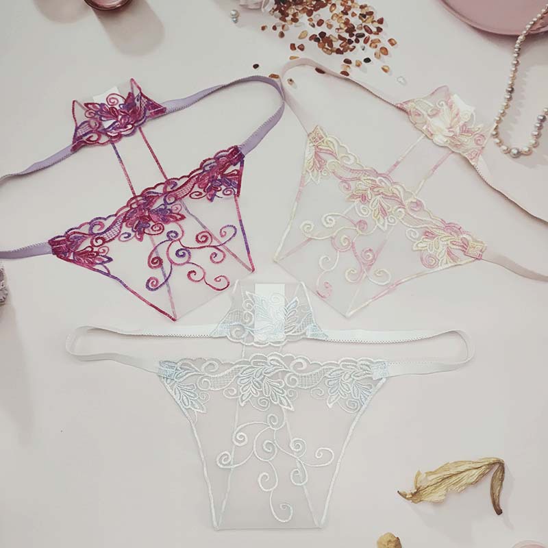 网纱绣花刺绣丁字裤轻复古文艺轻盈仙气甜美仙女风