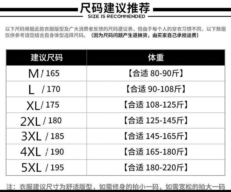| 5xl [85.00 kg-95.00 kg]](5XL【170-190斤】) | USD $0.0 | 7717 piece available |