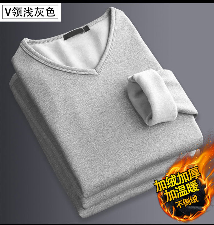 冬季加绒加厚保暖内衣男士秋衣青年可外穿单件上衣大码外贸打底衫