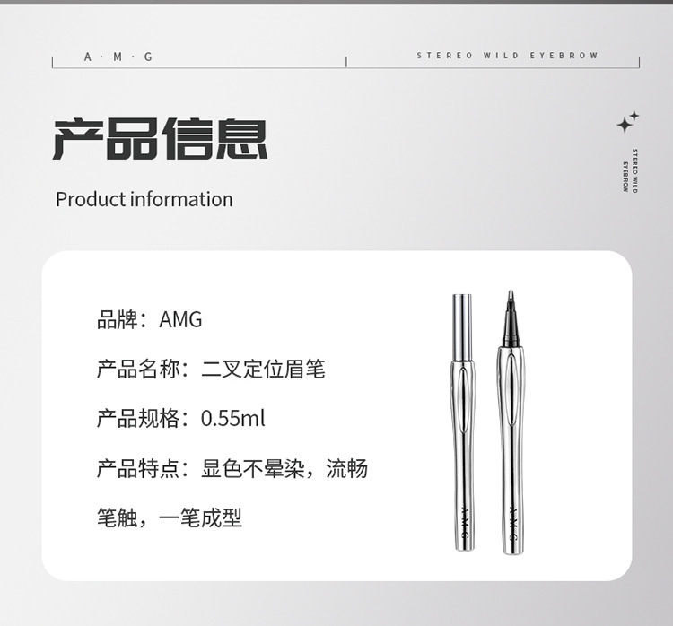 A.M.G二叉定位眉笔防水不晕染持久不脱色根根分明野生眉新手眉笔