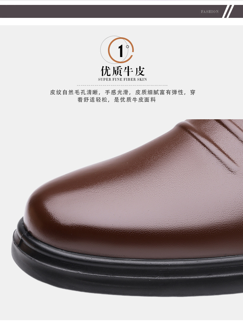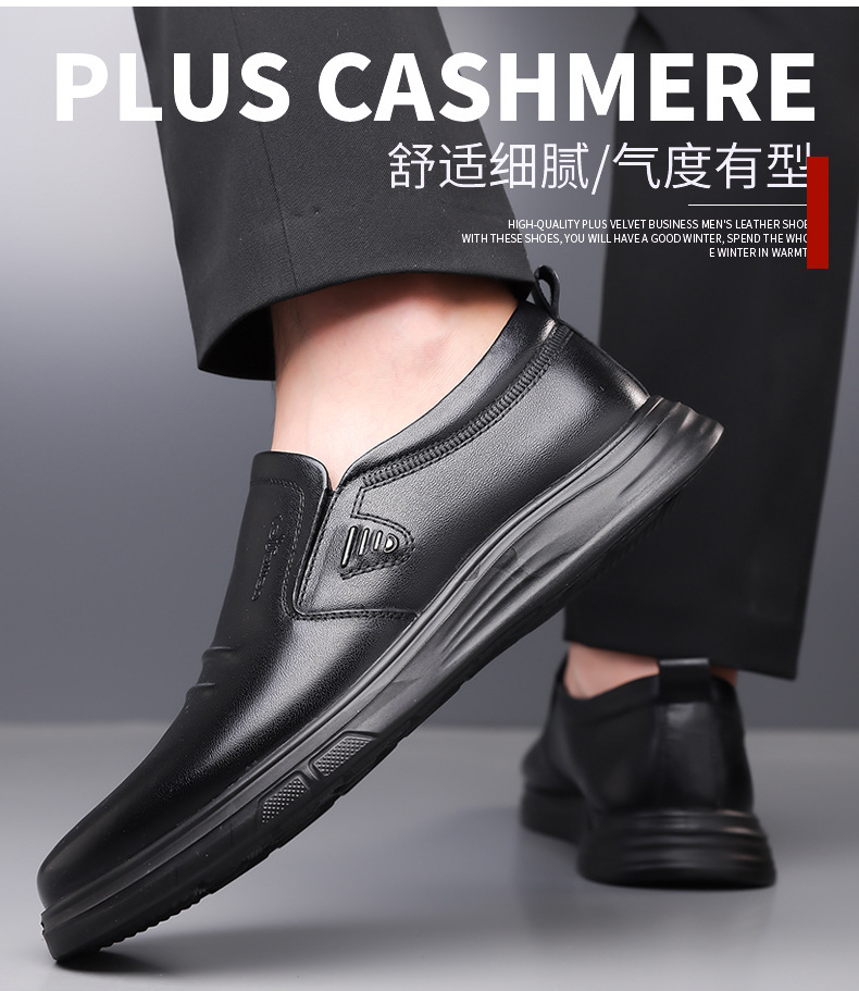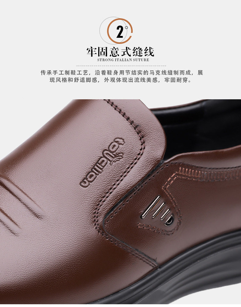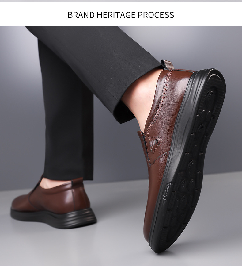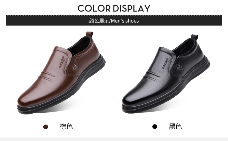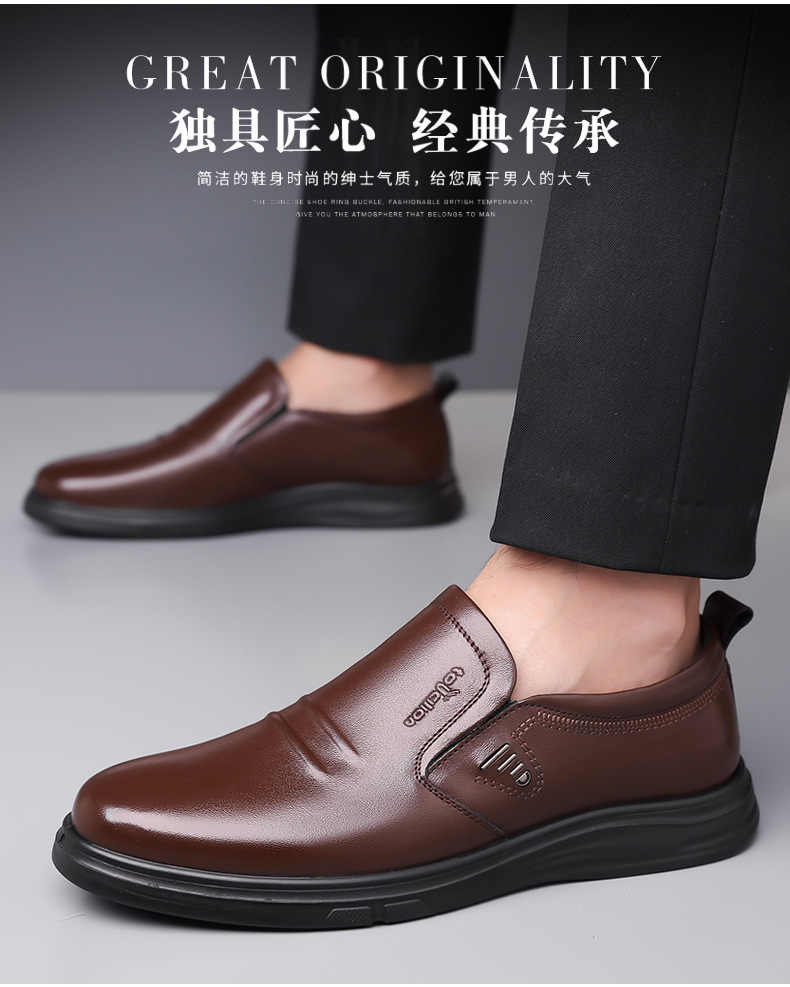 头层牛皮春秋皮鞋男士真牛皮软底防滑商务休闲男鞋素面套脚皮鞋