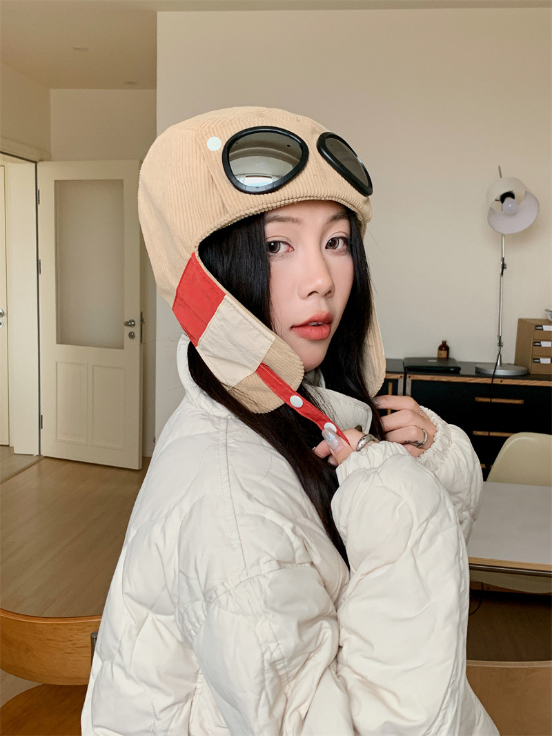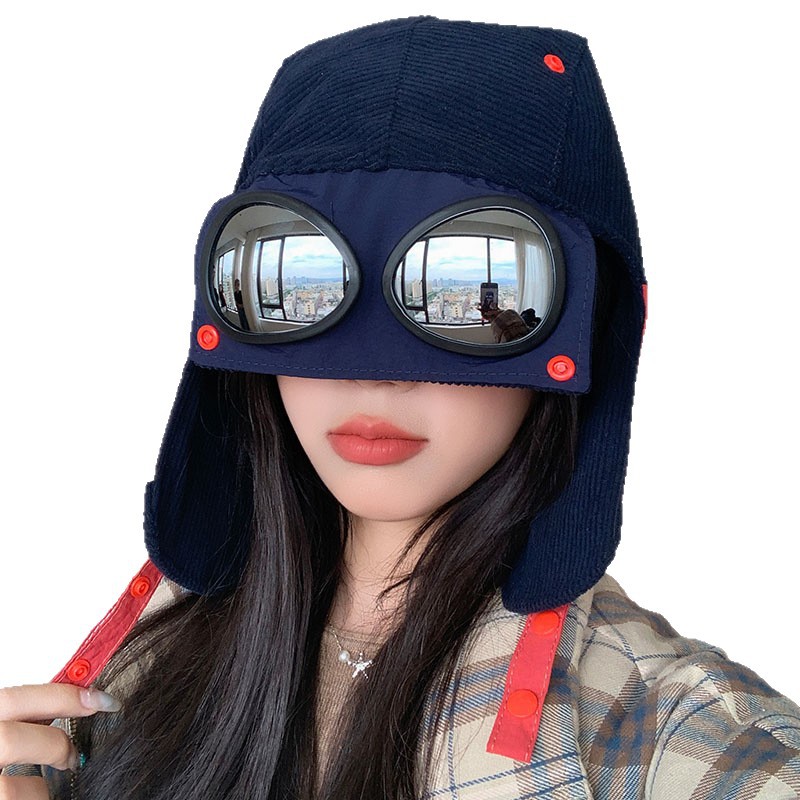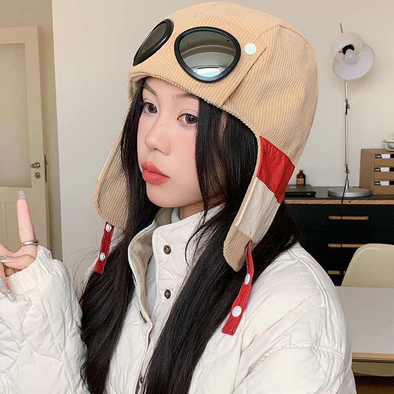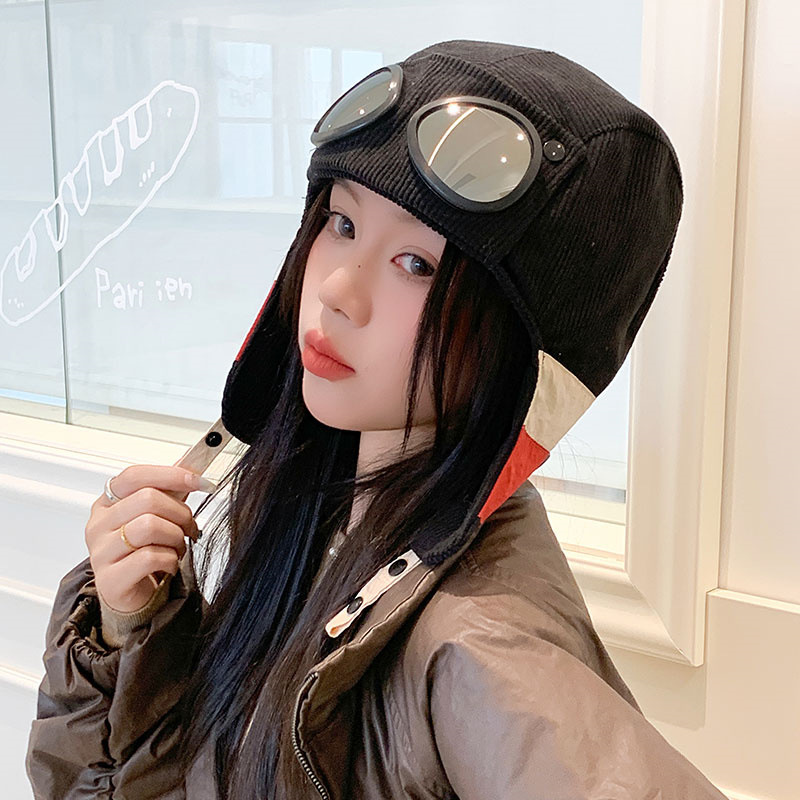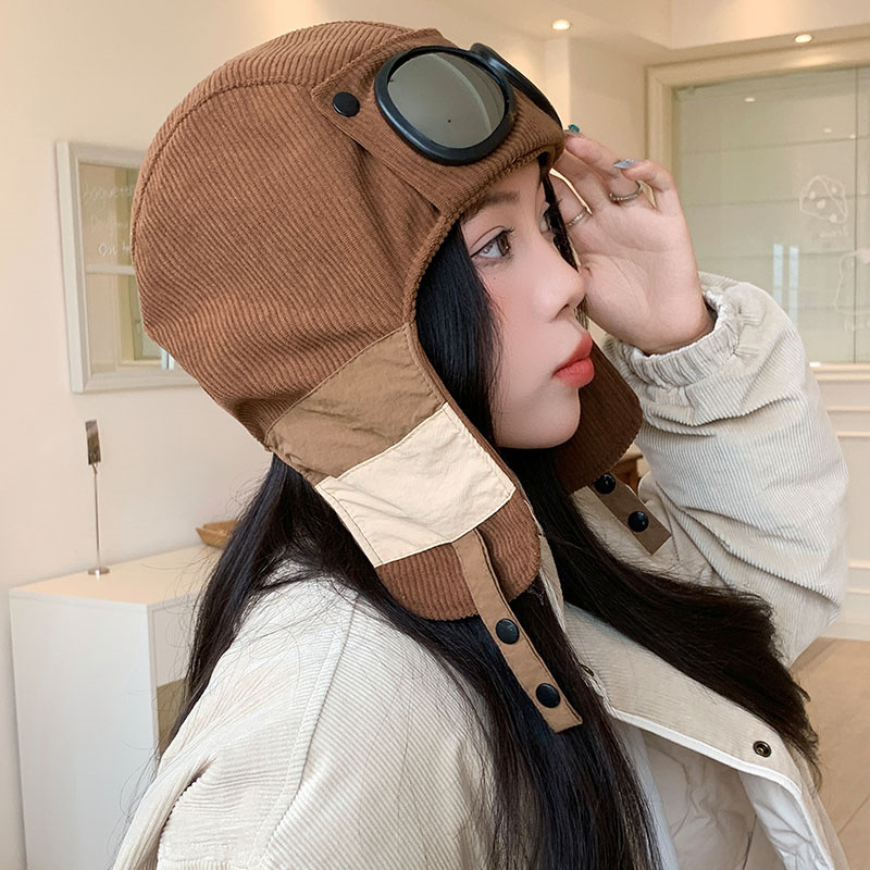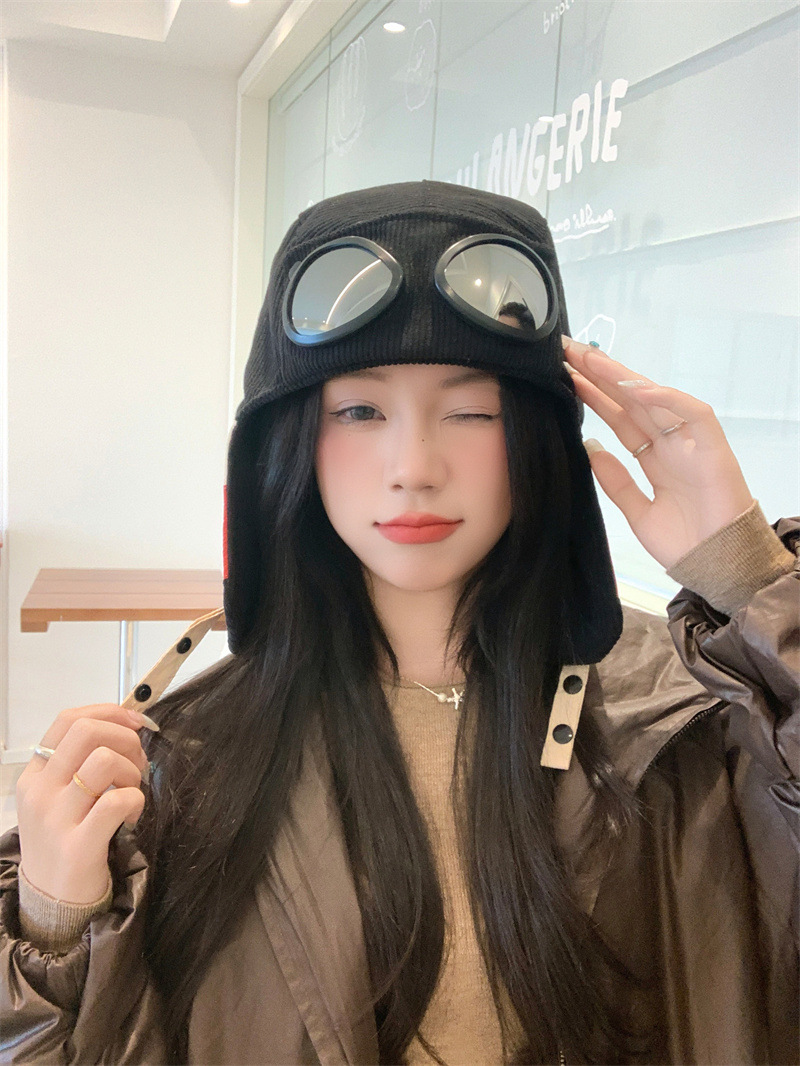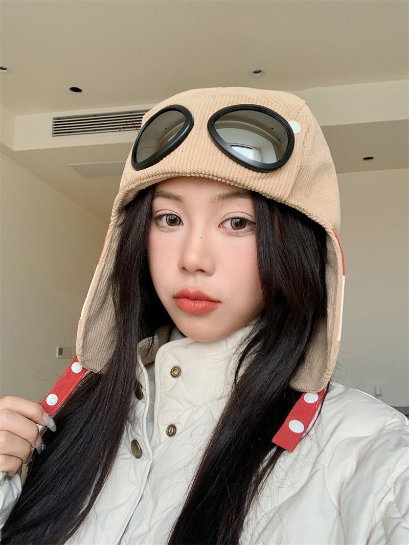 护目镜飞行员保暖雷锋帽子女士冬季护耳东北滑雪棉帽防风寒骑车帽