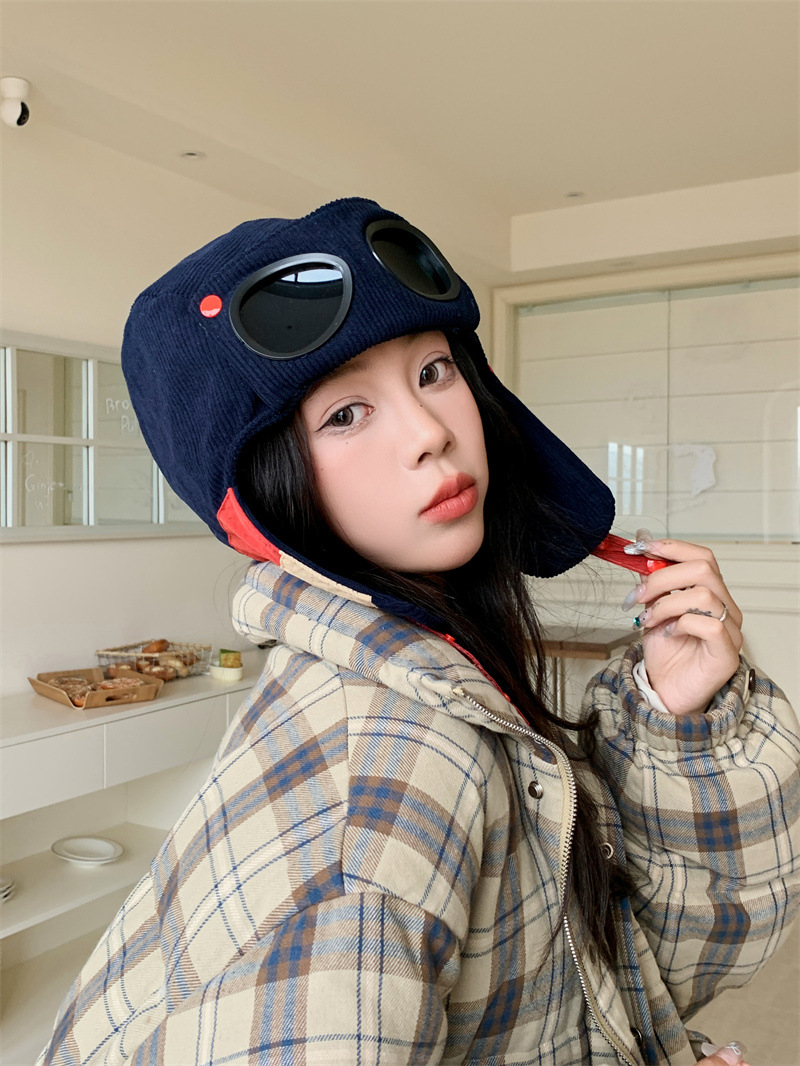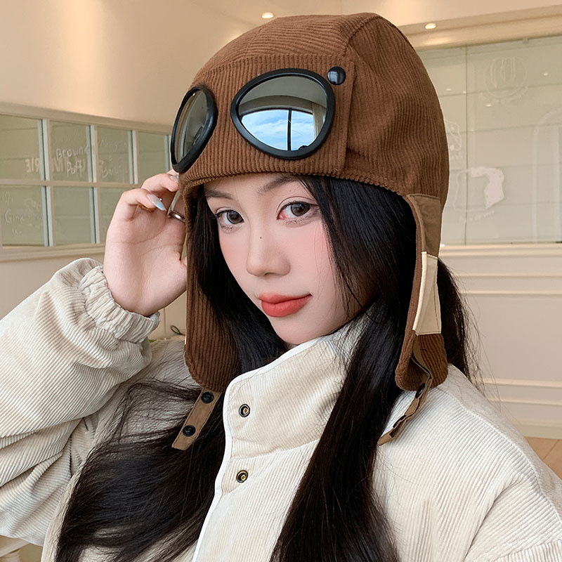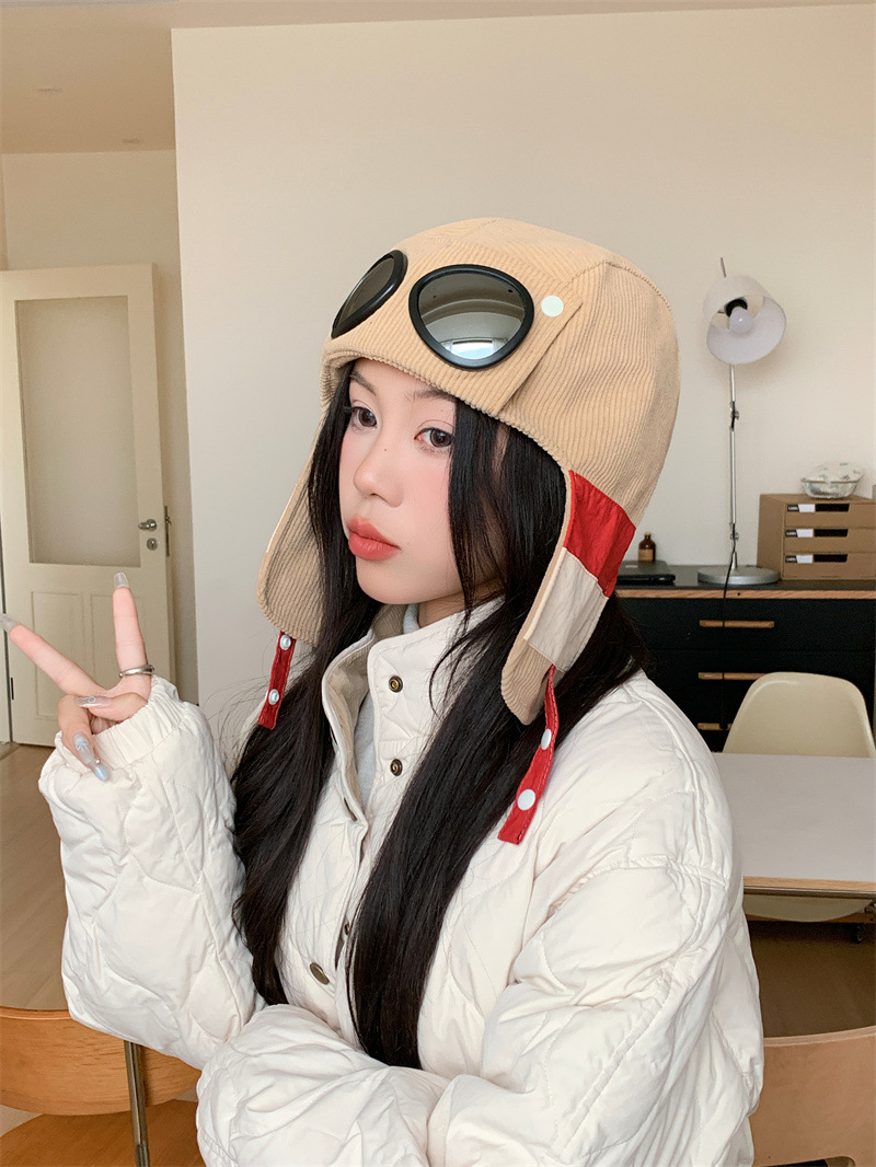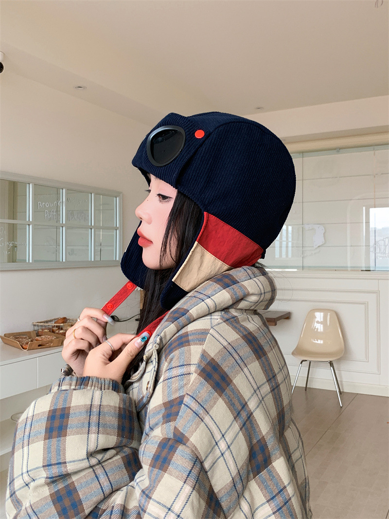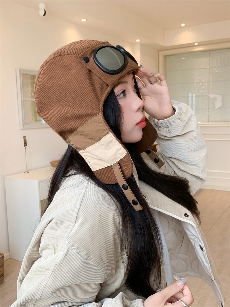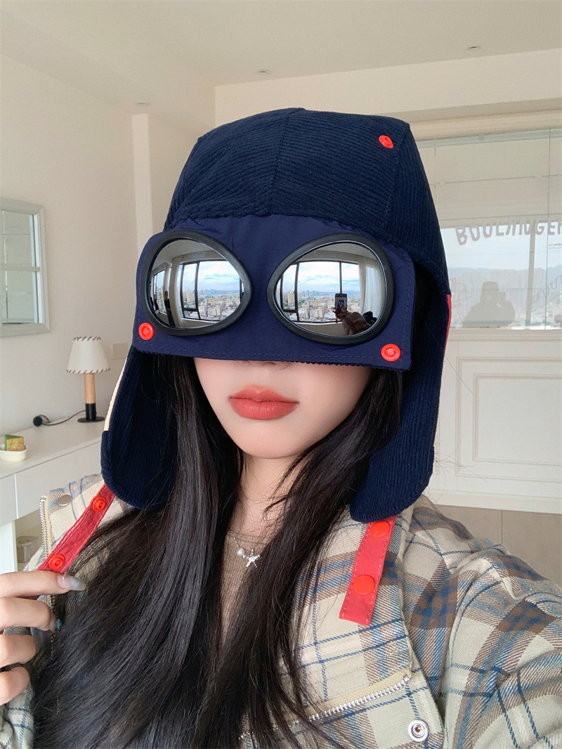 护目镜飞行员保暖雷锋帽子女士冬季护耳东北滑雪棉帽防风寒骑车帽