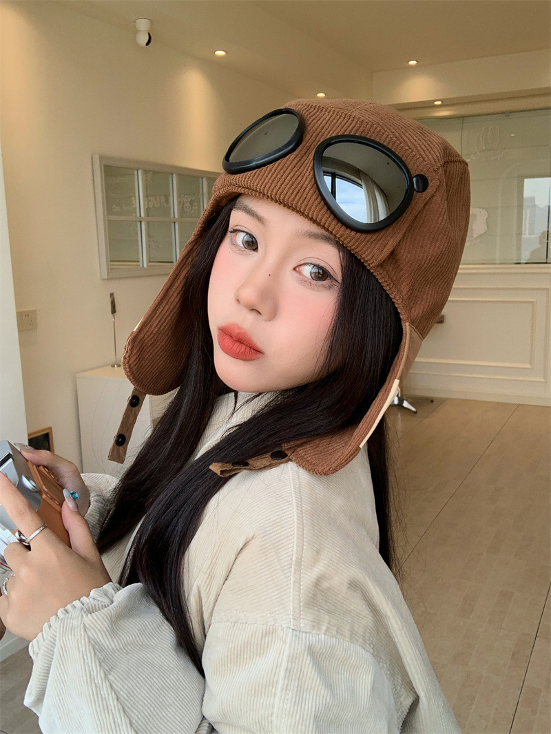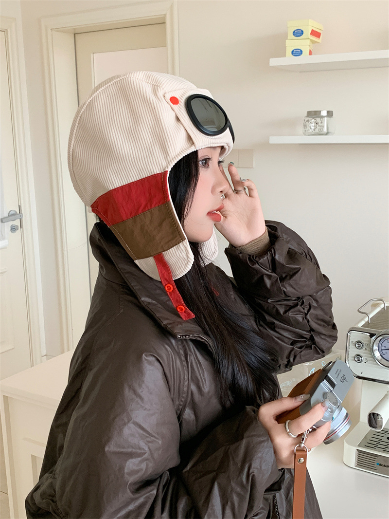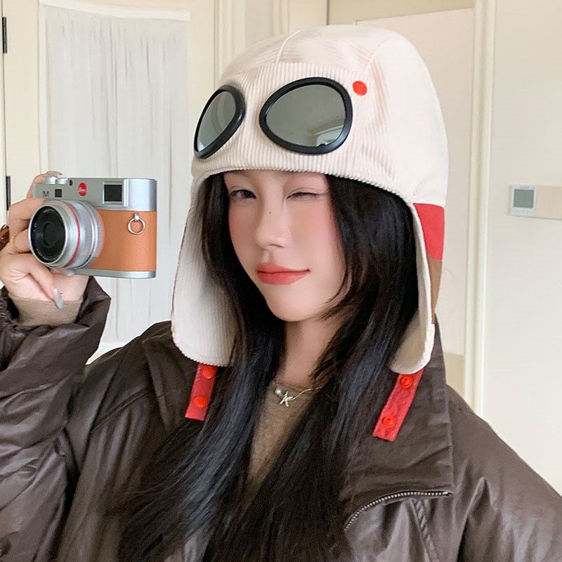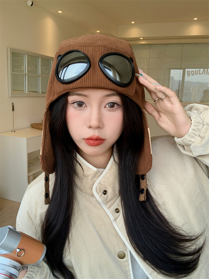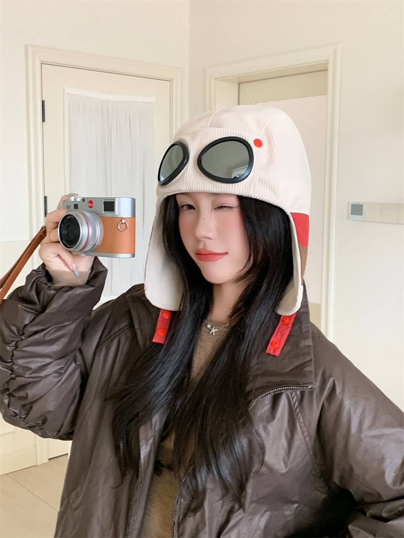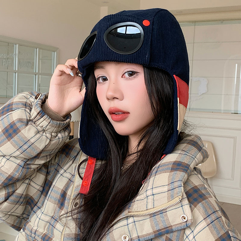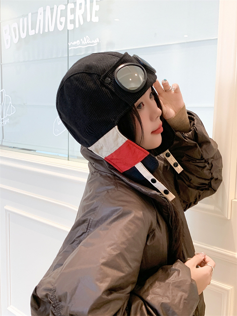 护目镜飞行员保暖雷锋帽子女士冬季护耳东北滑雪棉帽防风寒骑车帽