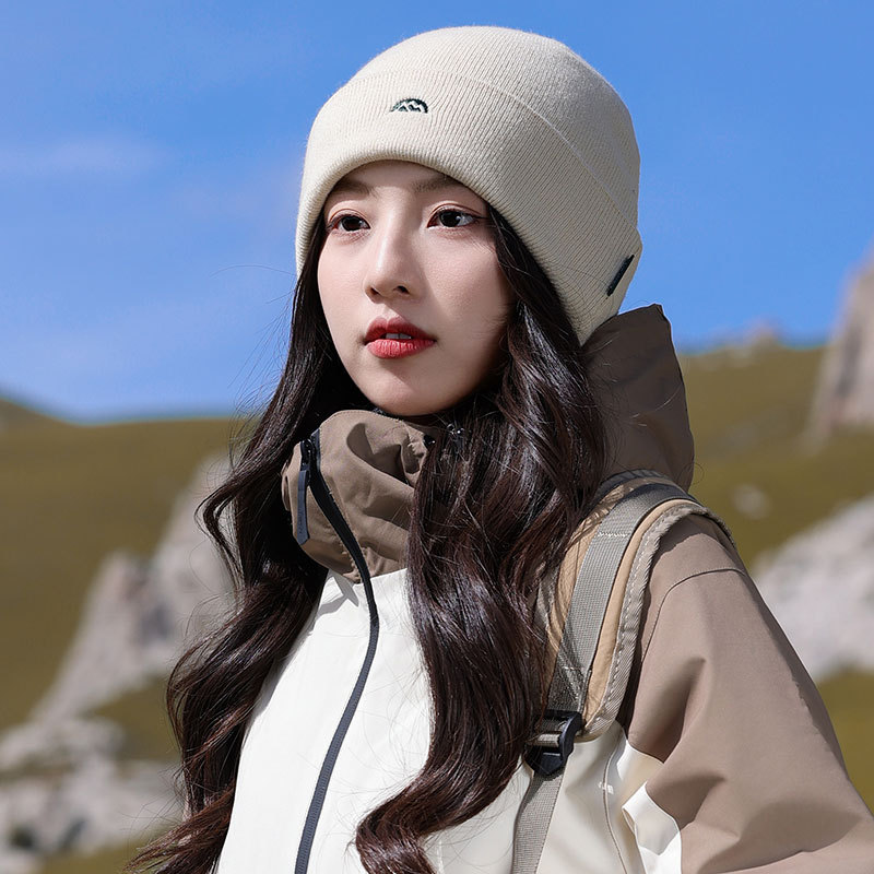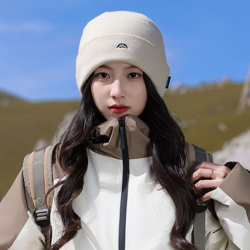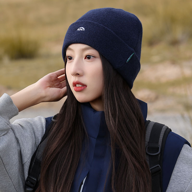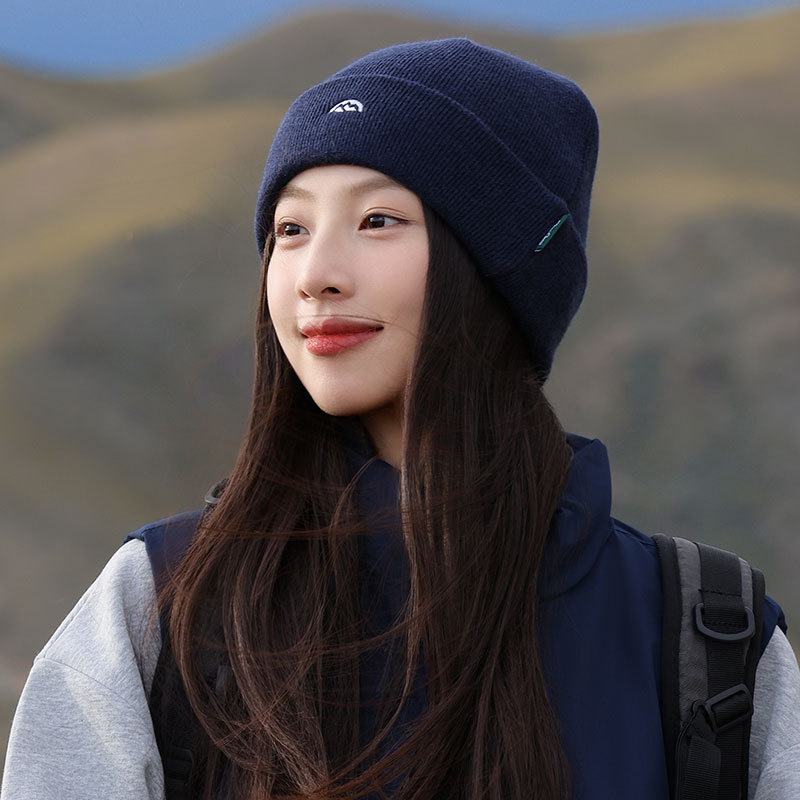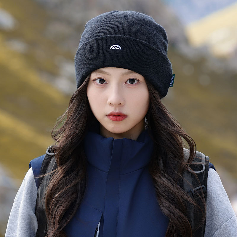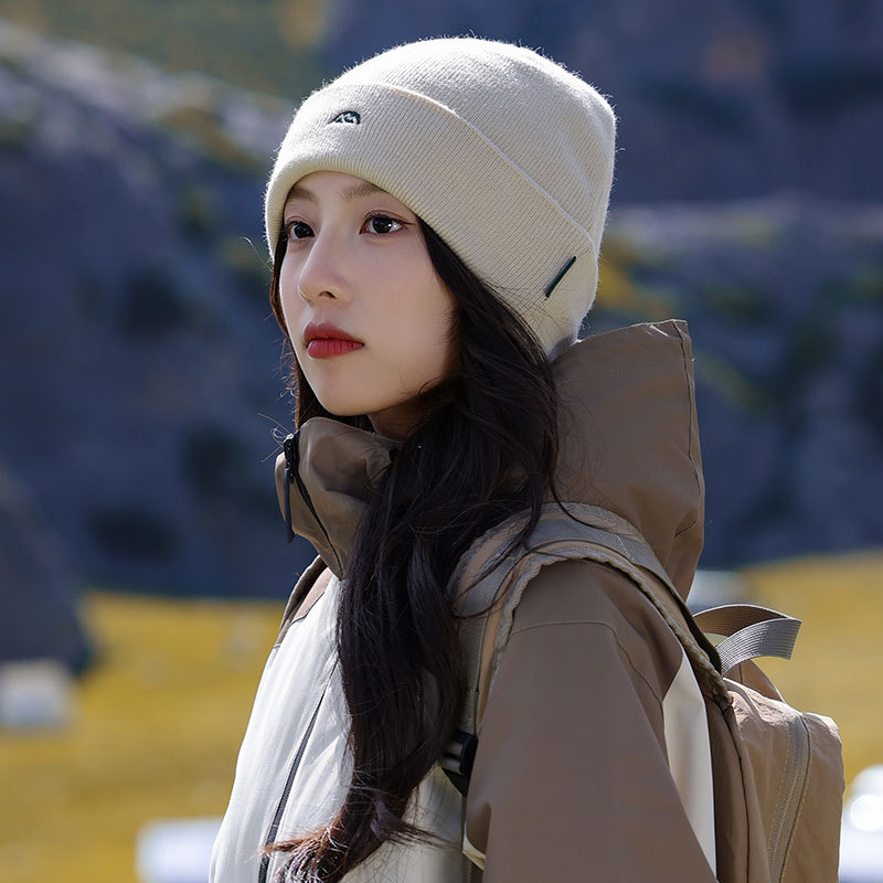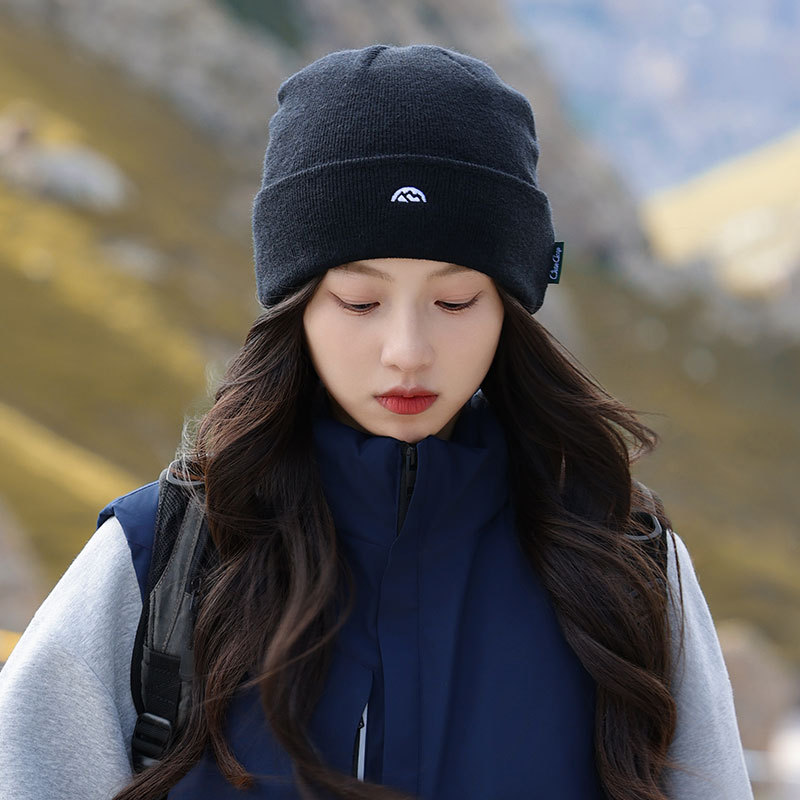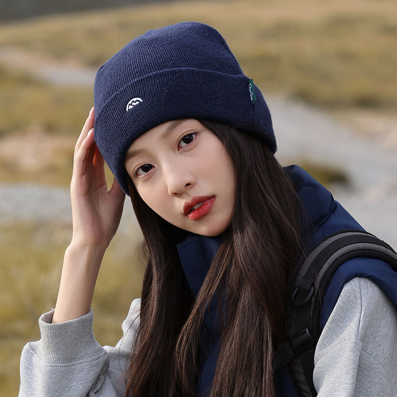 针织套头护耳帽子男士山系简约刺绣堆堆帽女生冬季户外保暖毛线帽