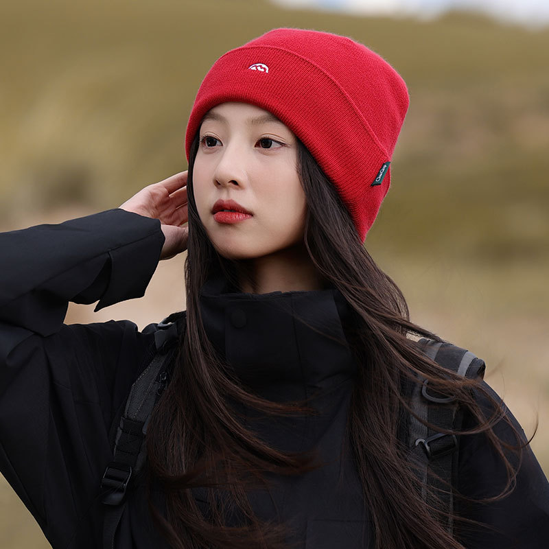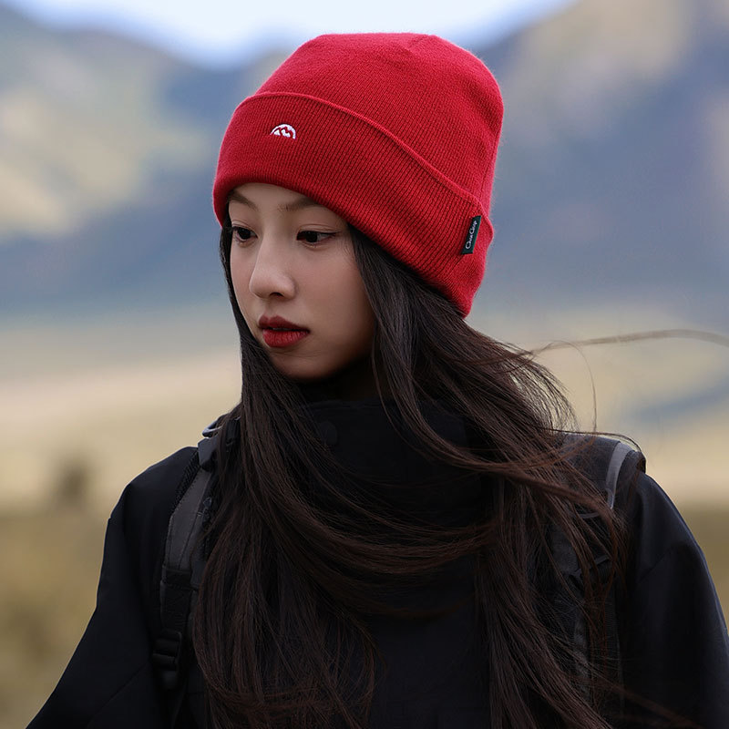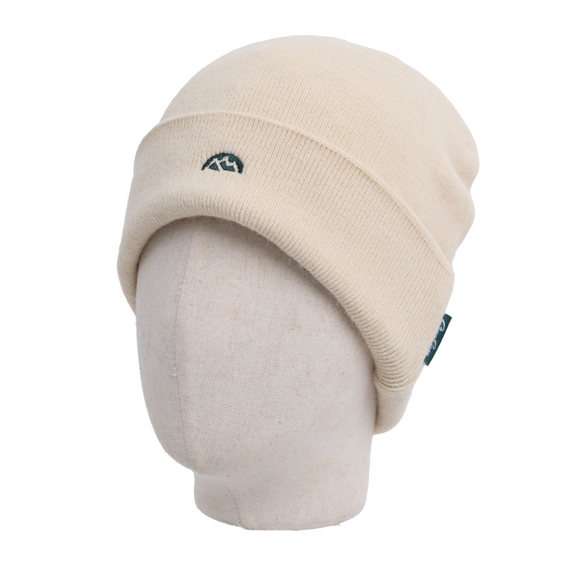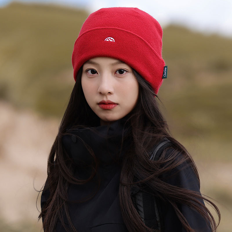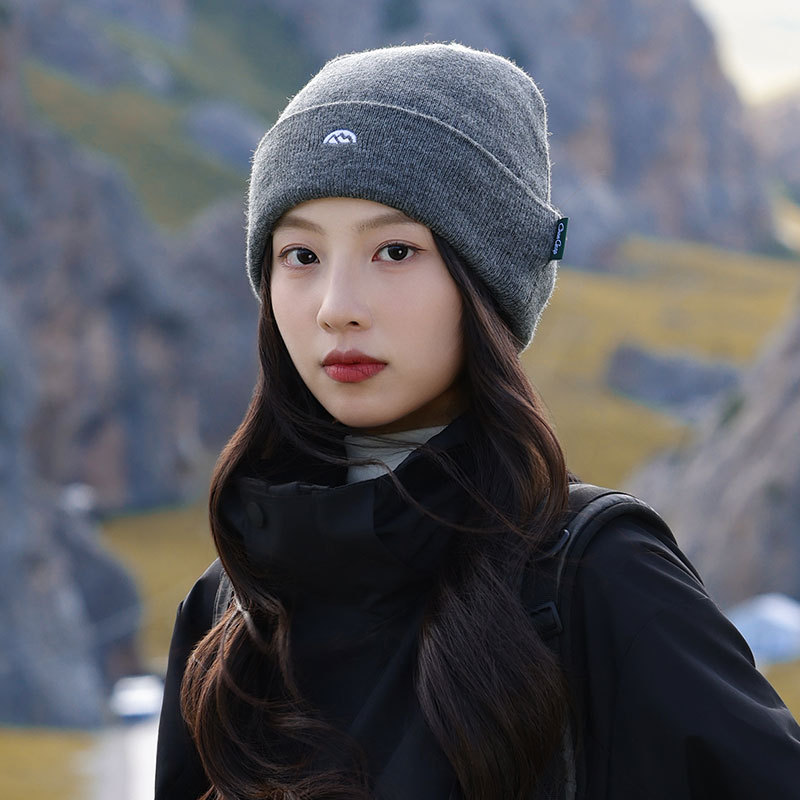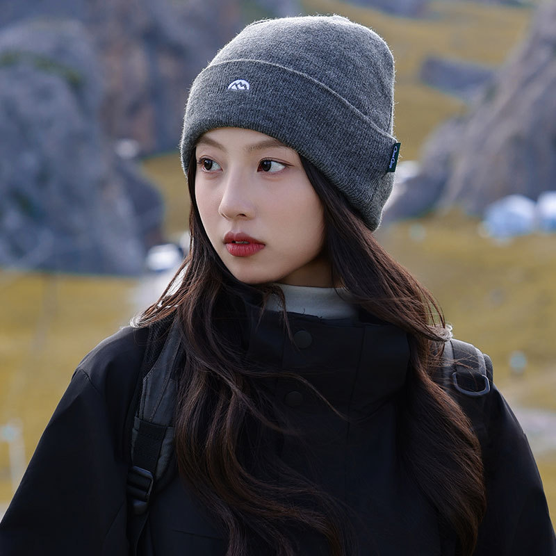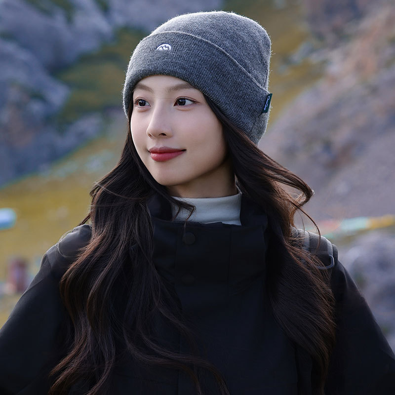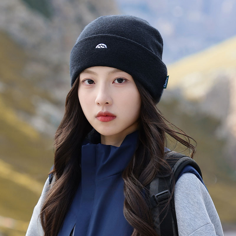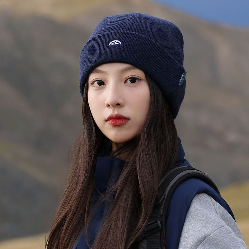针织套头护耳帽子男士山系简约刺绣堆堆帽女生冬季户外保暖毛线帽