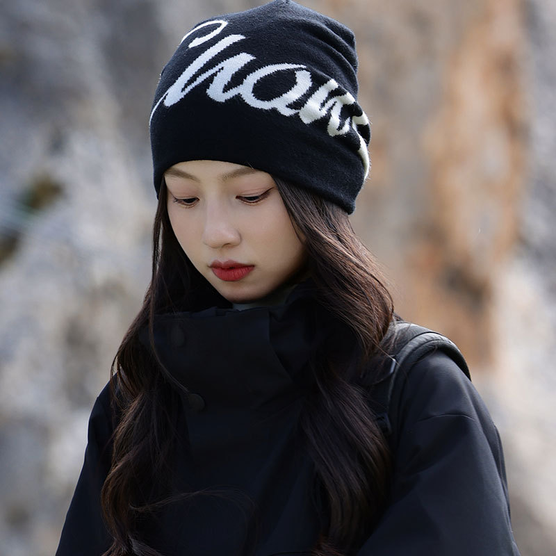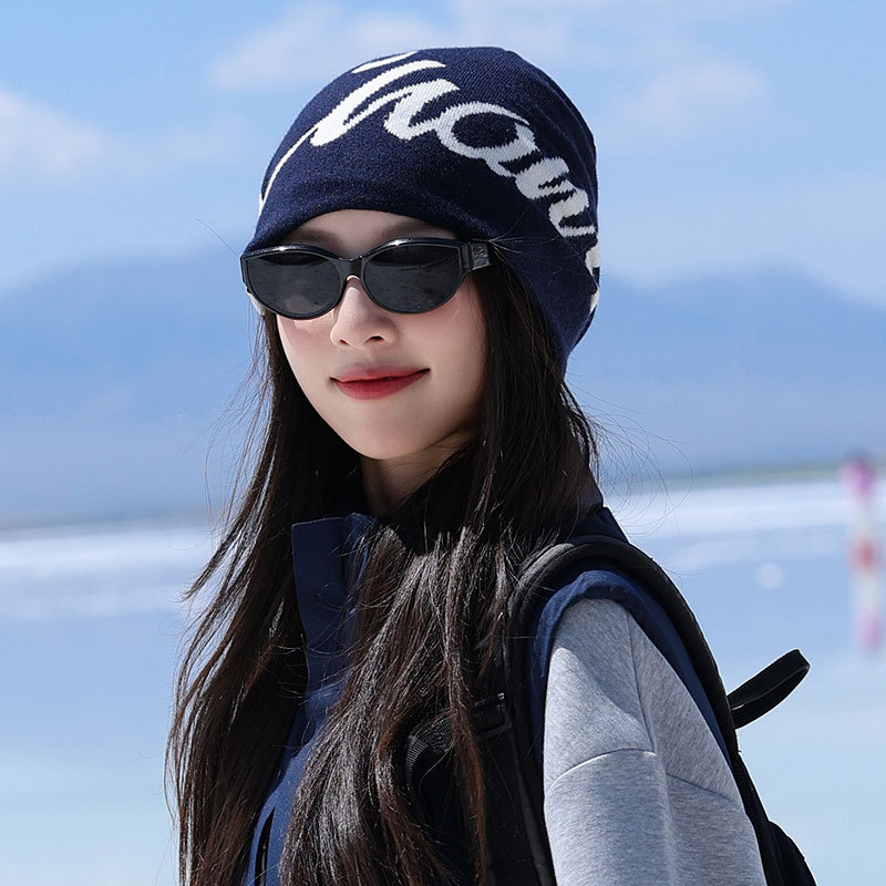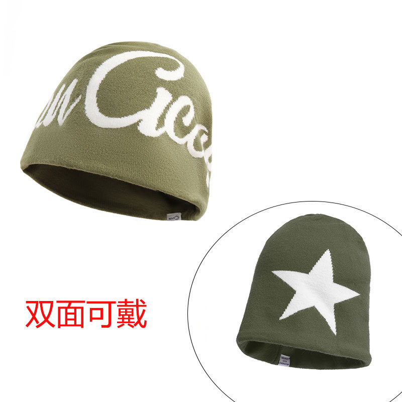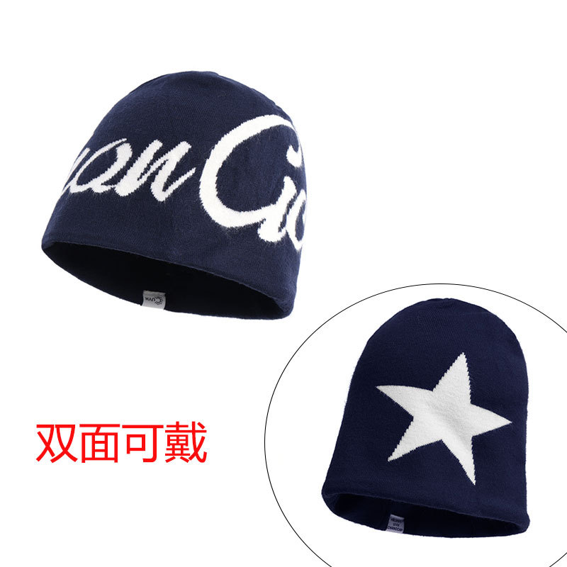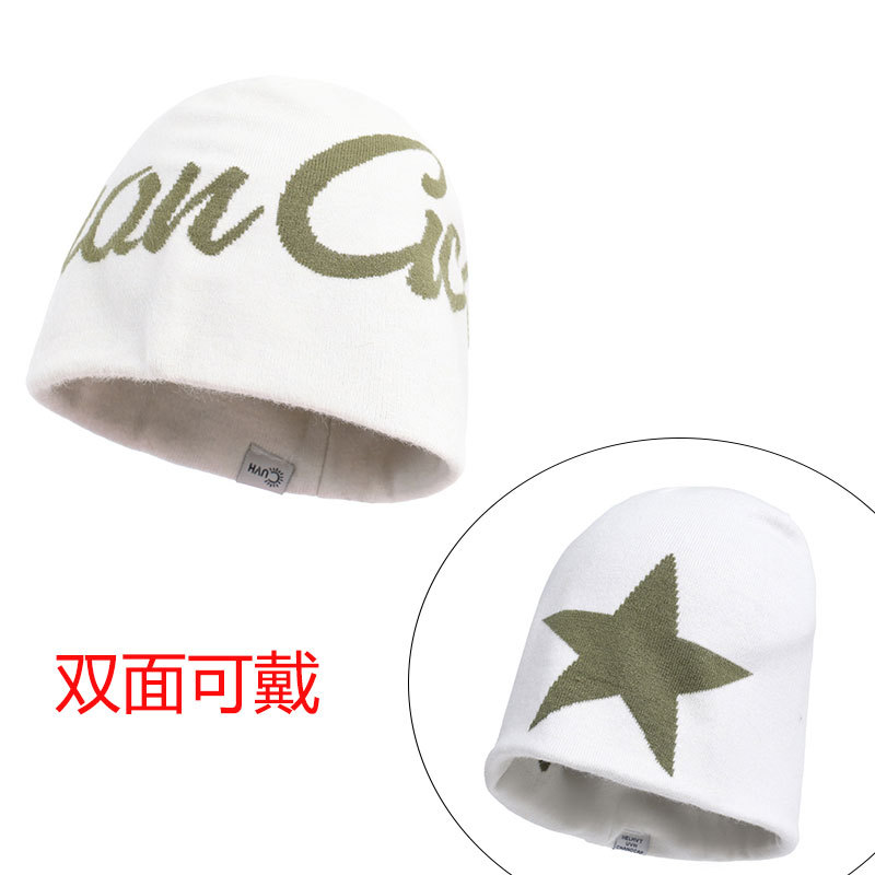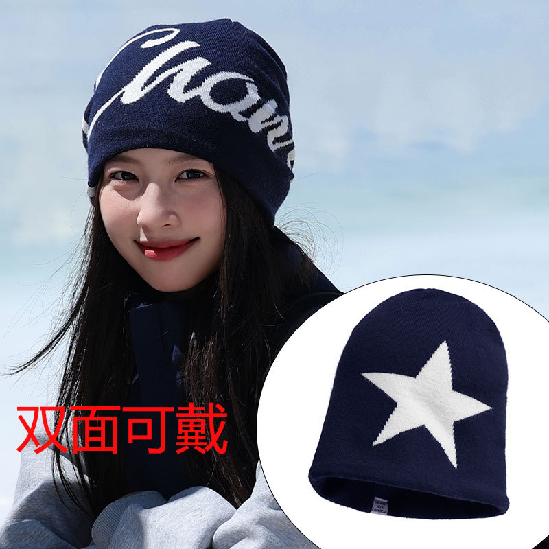 双面可戴跨境针织包头帽子男女简约百搭护耳堆堆帽户外运动毛线帽