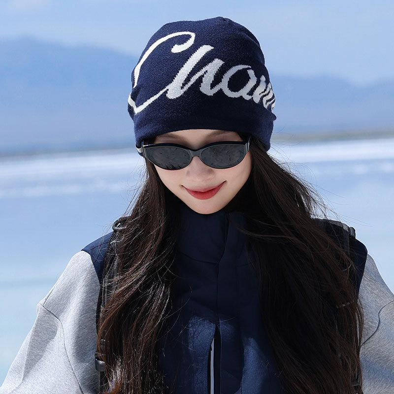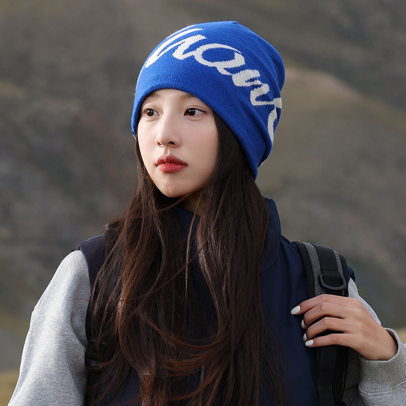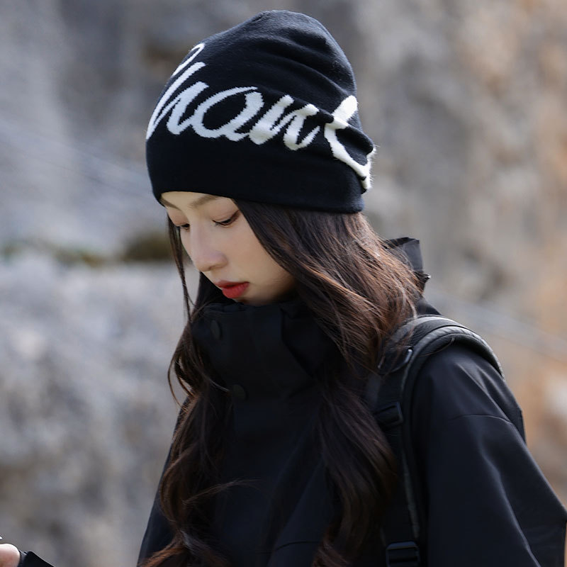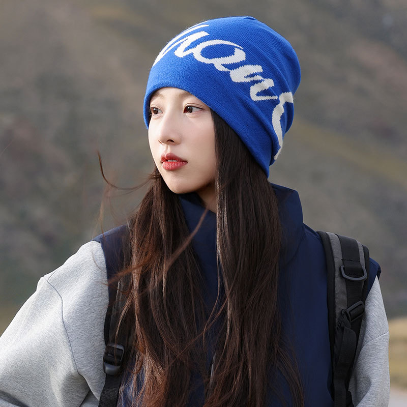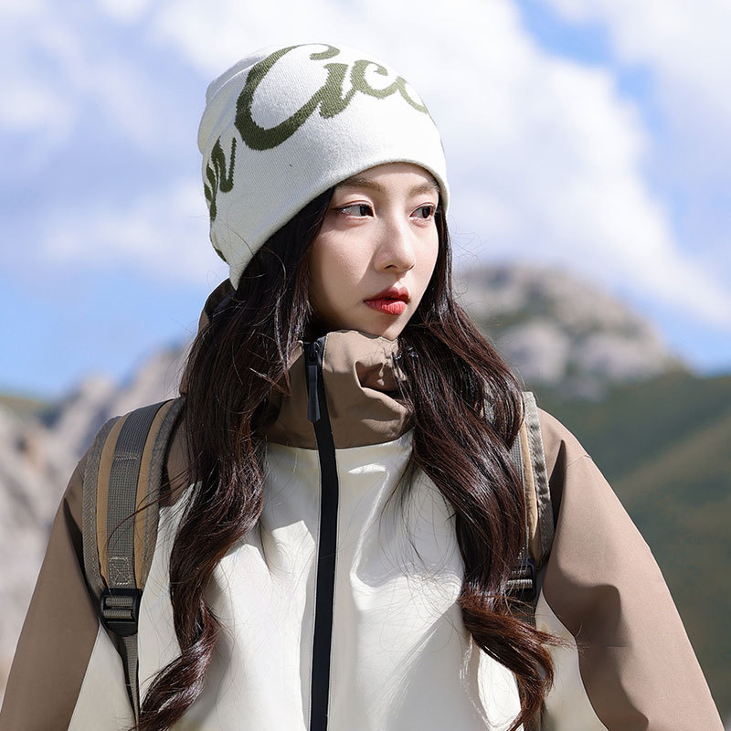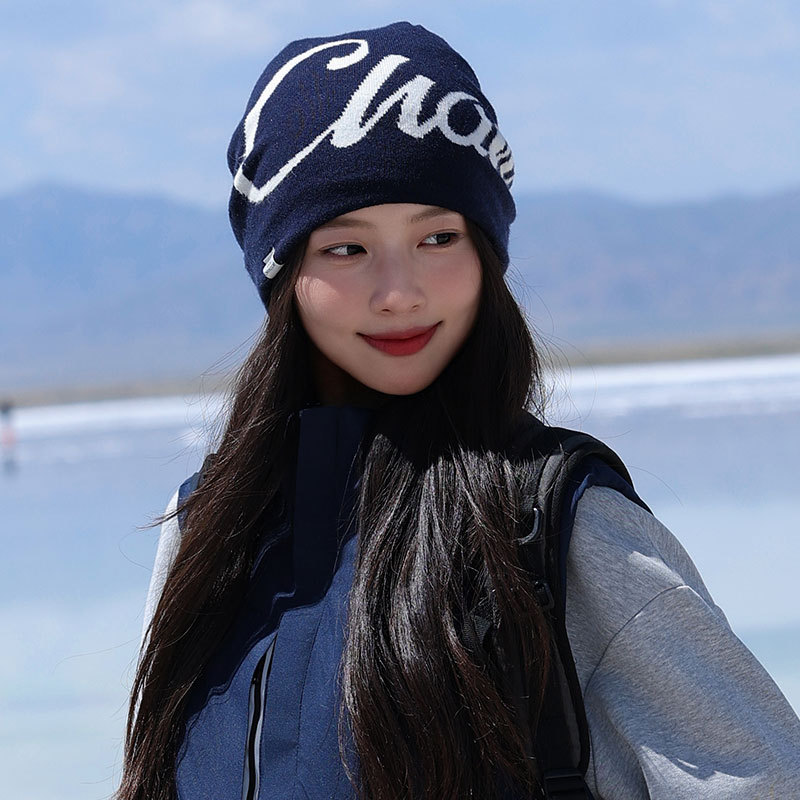 双面可戴跨境针织包头帽子男女简约百搭护耳堆堆帽户外运动毛线帽