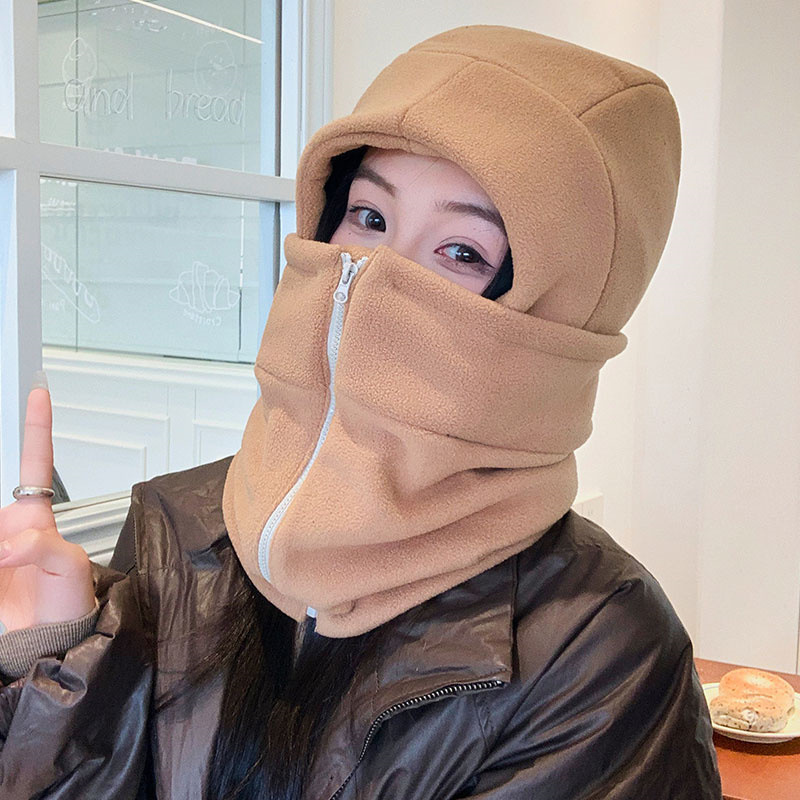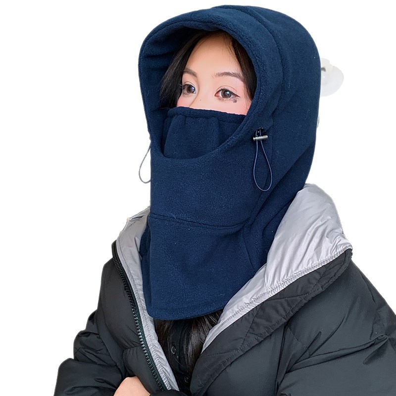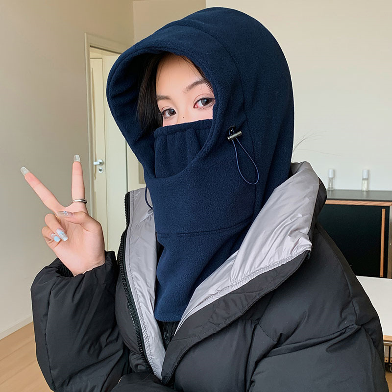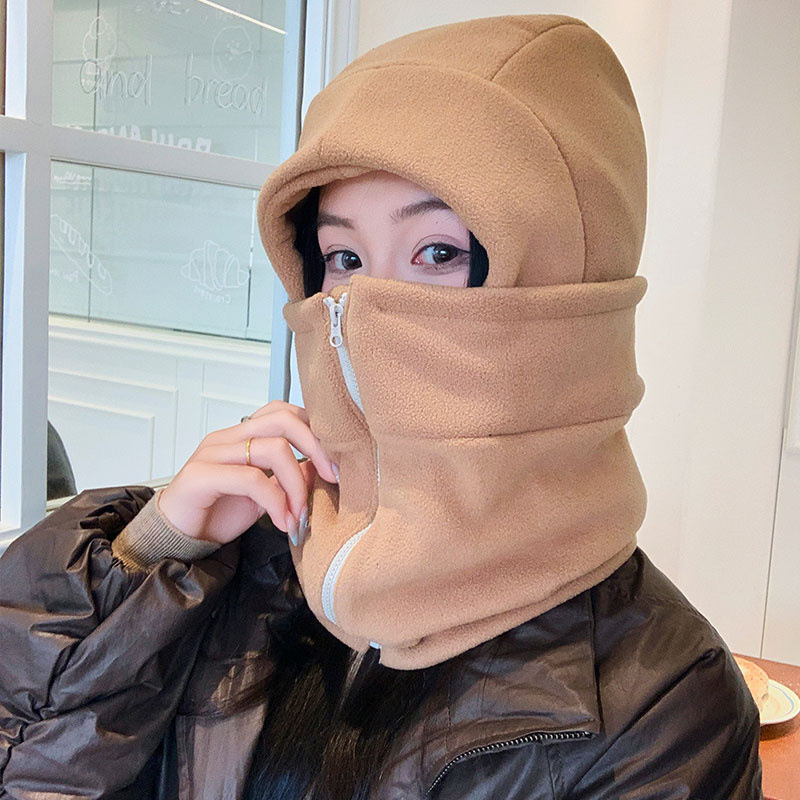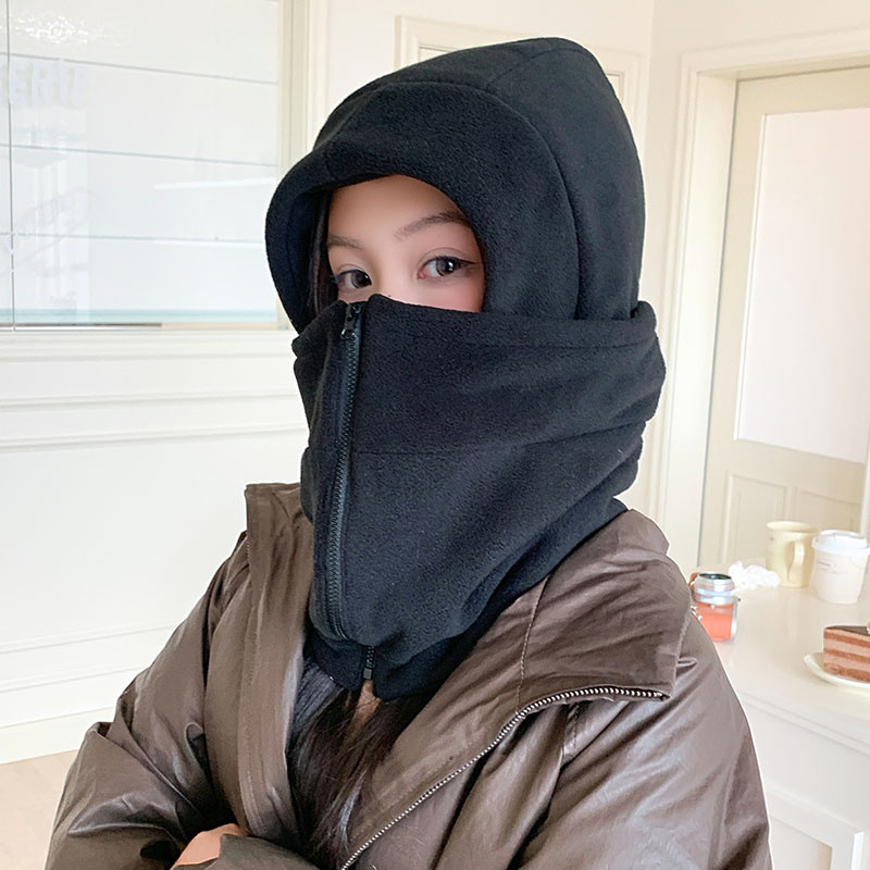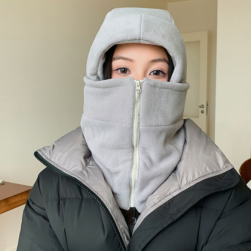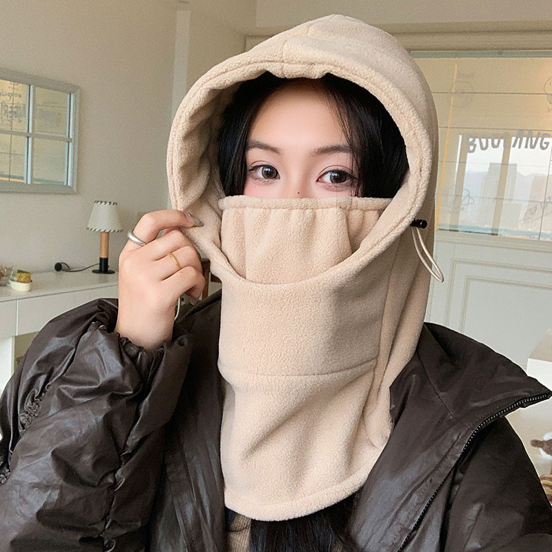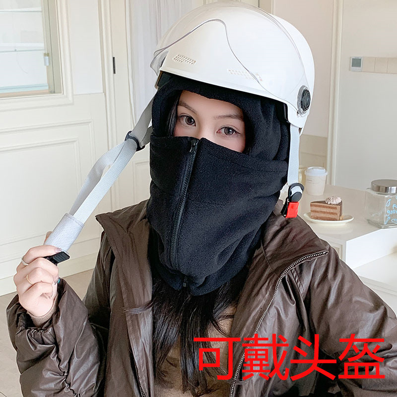 男女可戴摇粒绒保暖雷锋帽户外女骑电动车防风寒围脖面罩一体帽冬