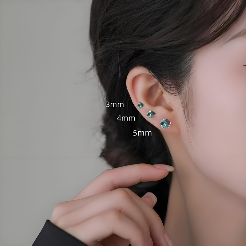 蓝色锆石耳钉925银轻奢高级感彩色日常百搭ins粉色闪钻爆闪内螺旋