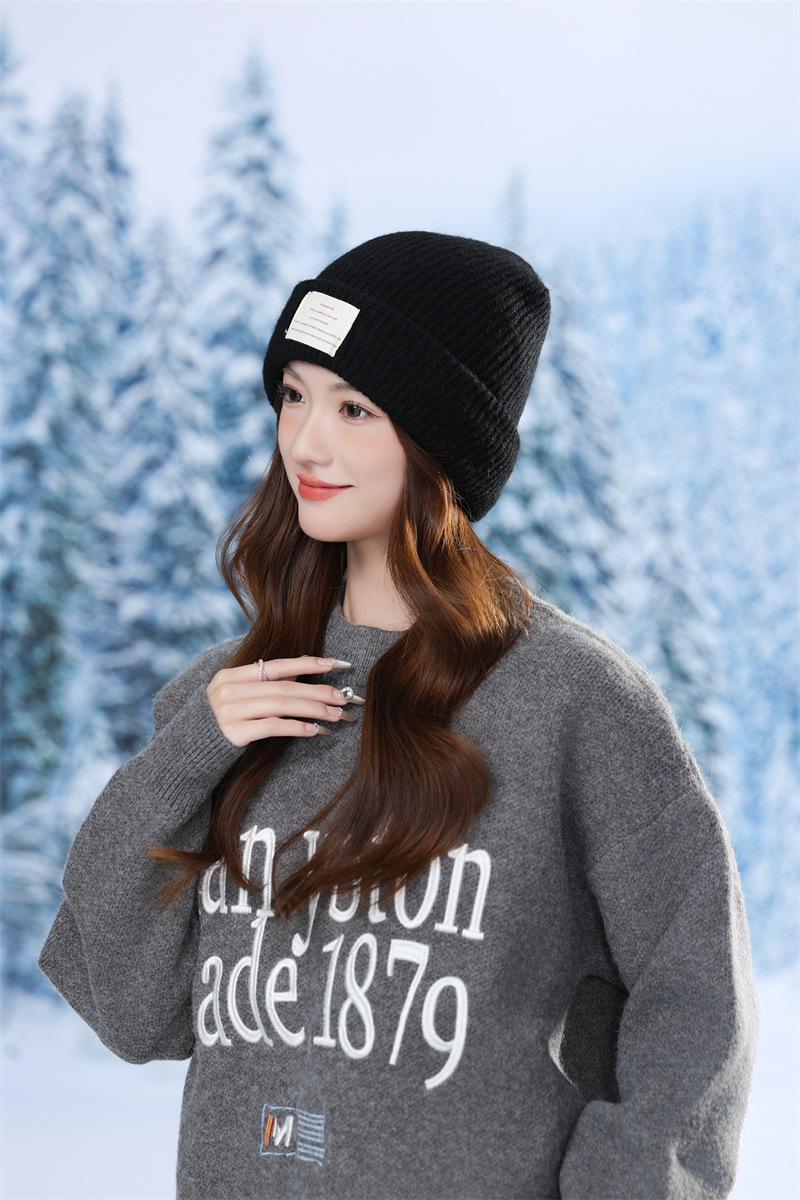 跨境针织保暖帽子女冬季套头护耳毛线帽韩版潮百搭防寒围巾帽外贸