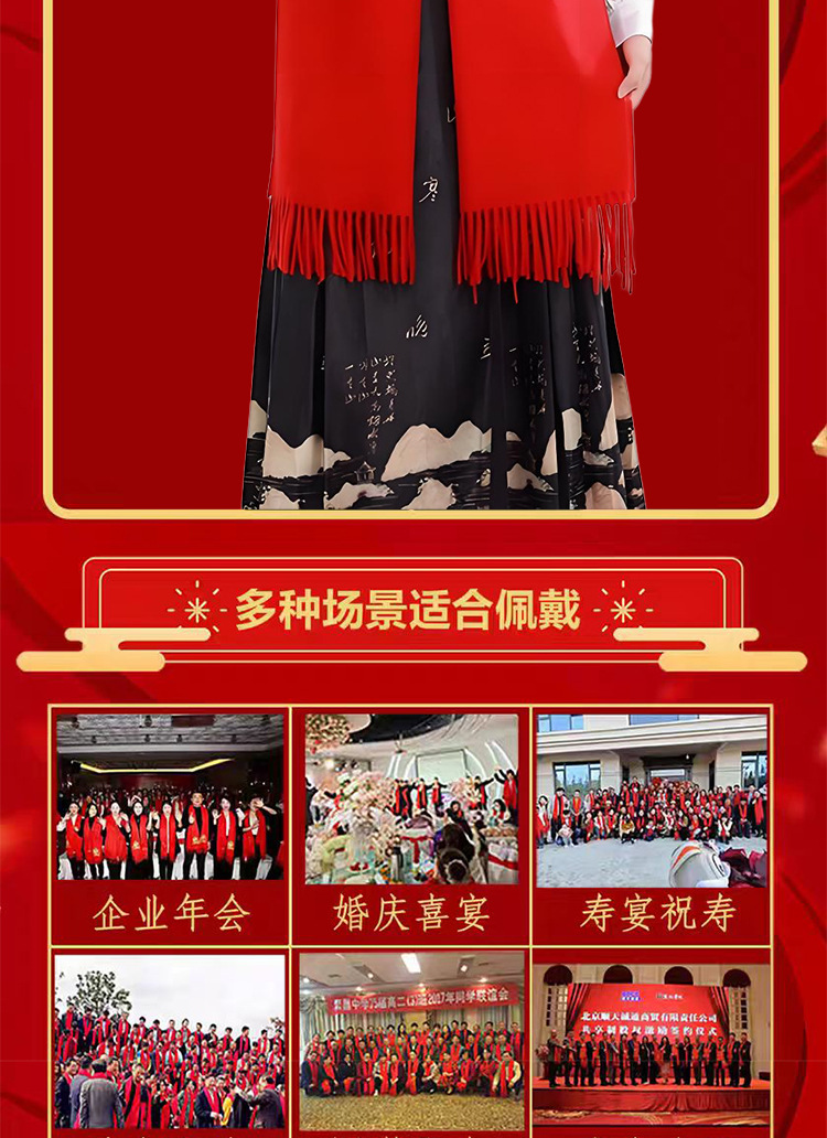 厂家直销中国红年会红围巾定制logo开业典礼公司聚会年会批发刺绣