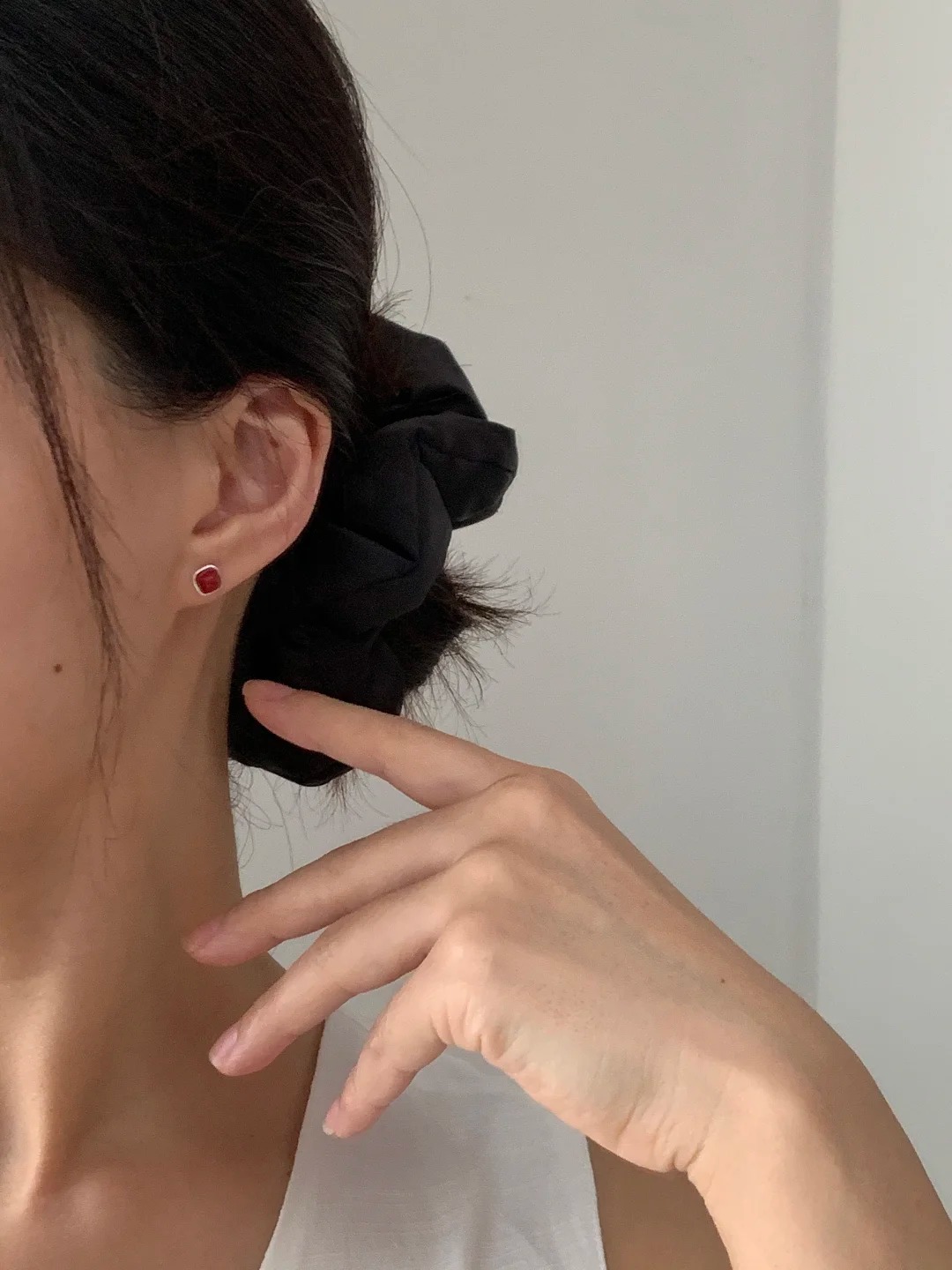 S999纯银银针红豆耳钉红色耳骨钉洗澡睡觉免摘小香风耳饰品新款