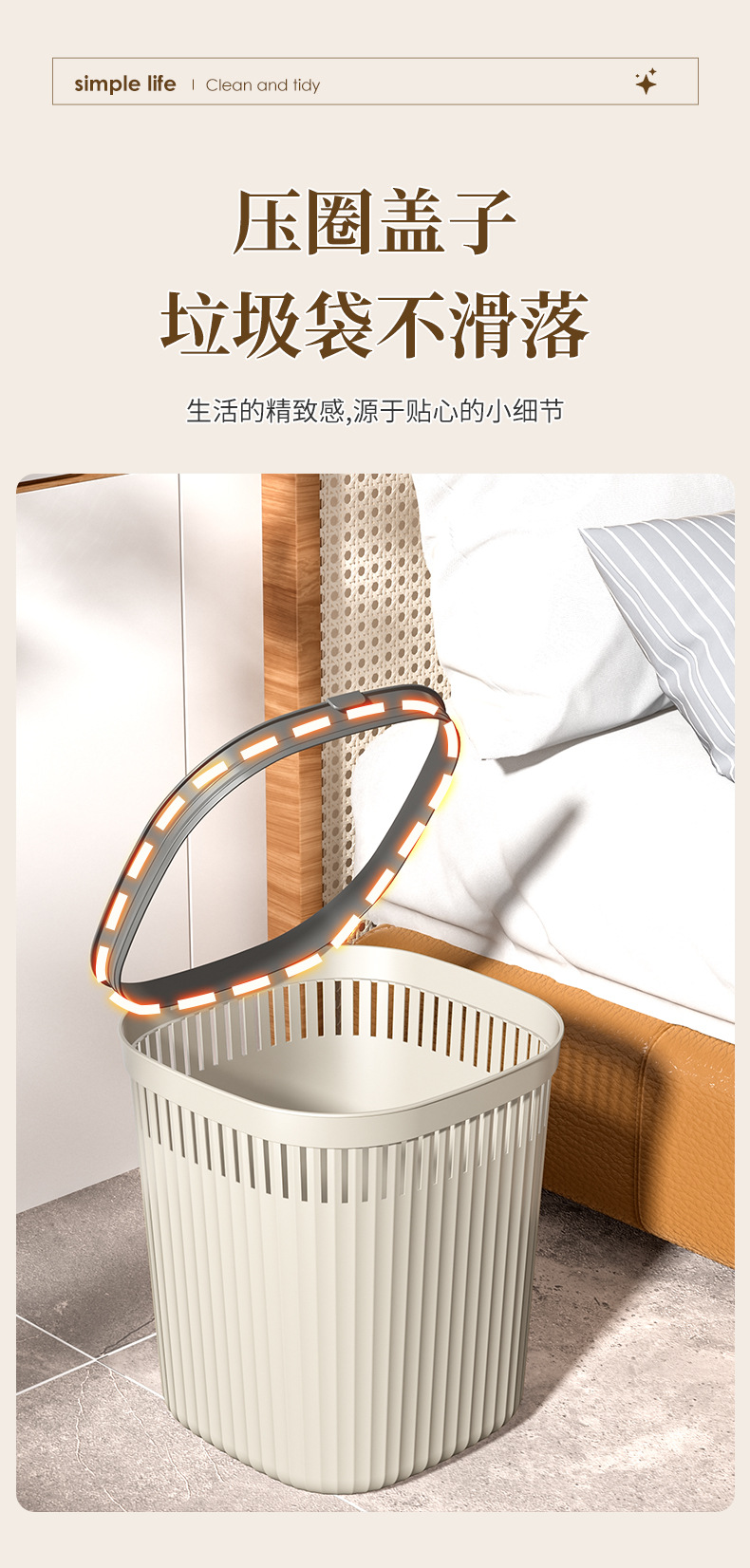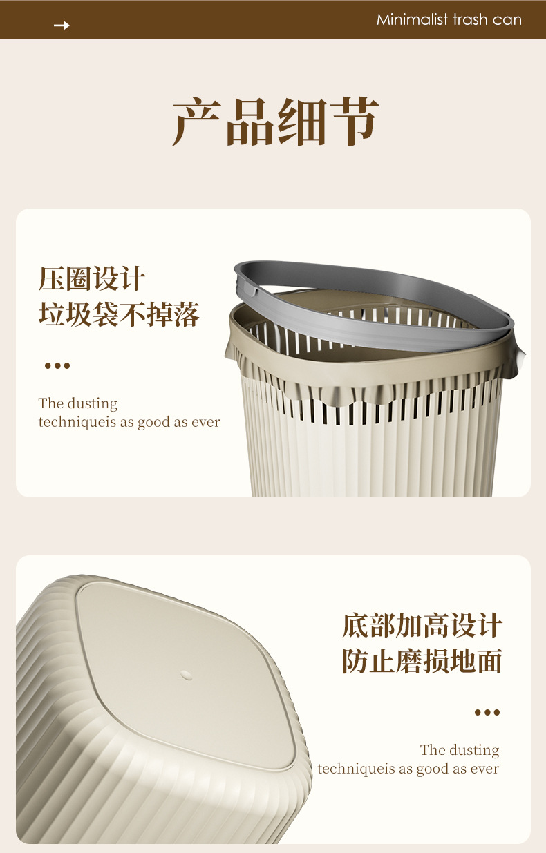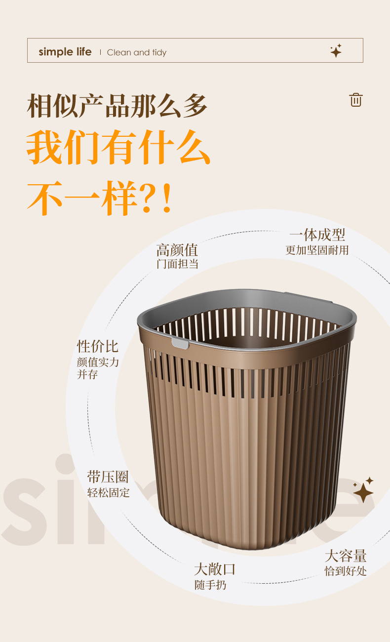 家用压圈厨房垃圾桶大号无盖简约卫生间客厅厕所创意塑料垃圾篓