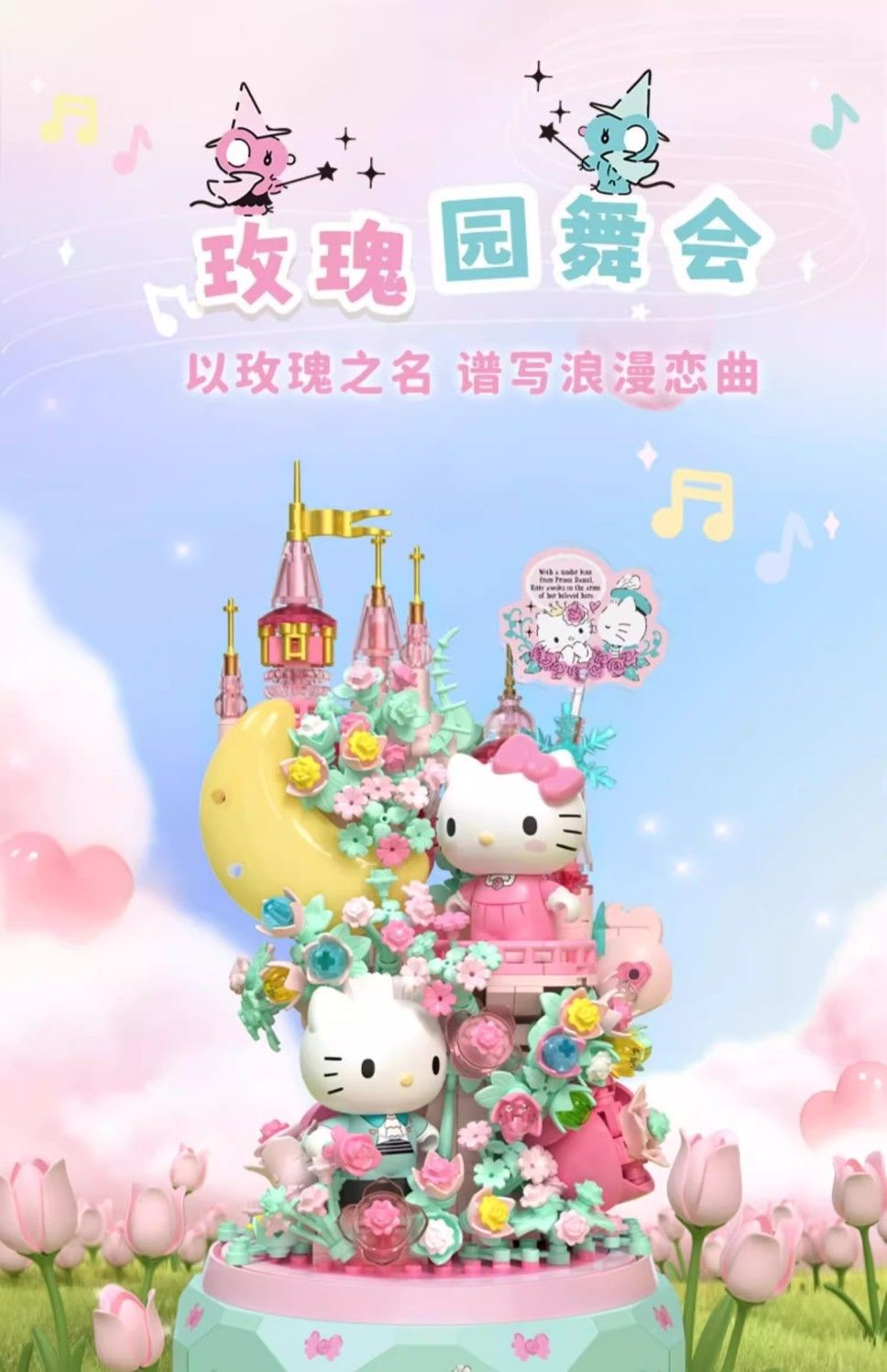 月光社梦幻玫瑰园舞会模型积木玩具儿童益智力拼装女孩生日礼物