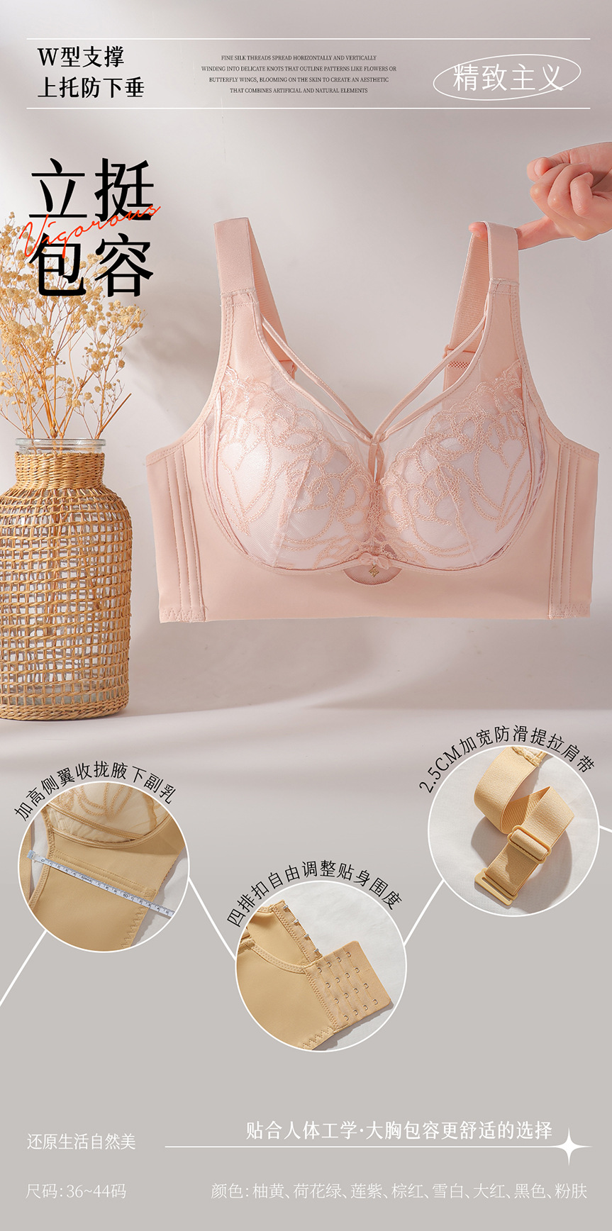7125新款轻薄柔软蕾丝调整型女网纱文胸性感深V防下垂美胸带聚拢