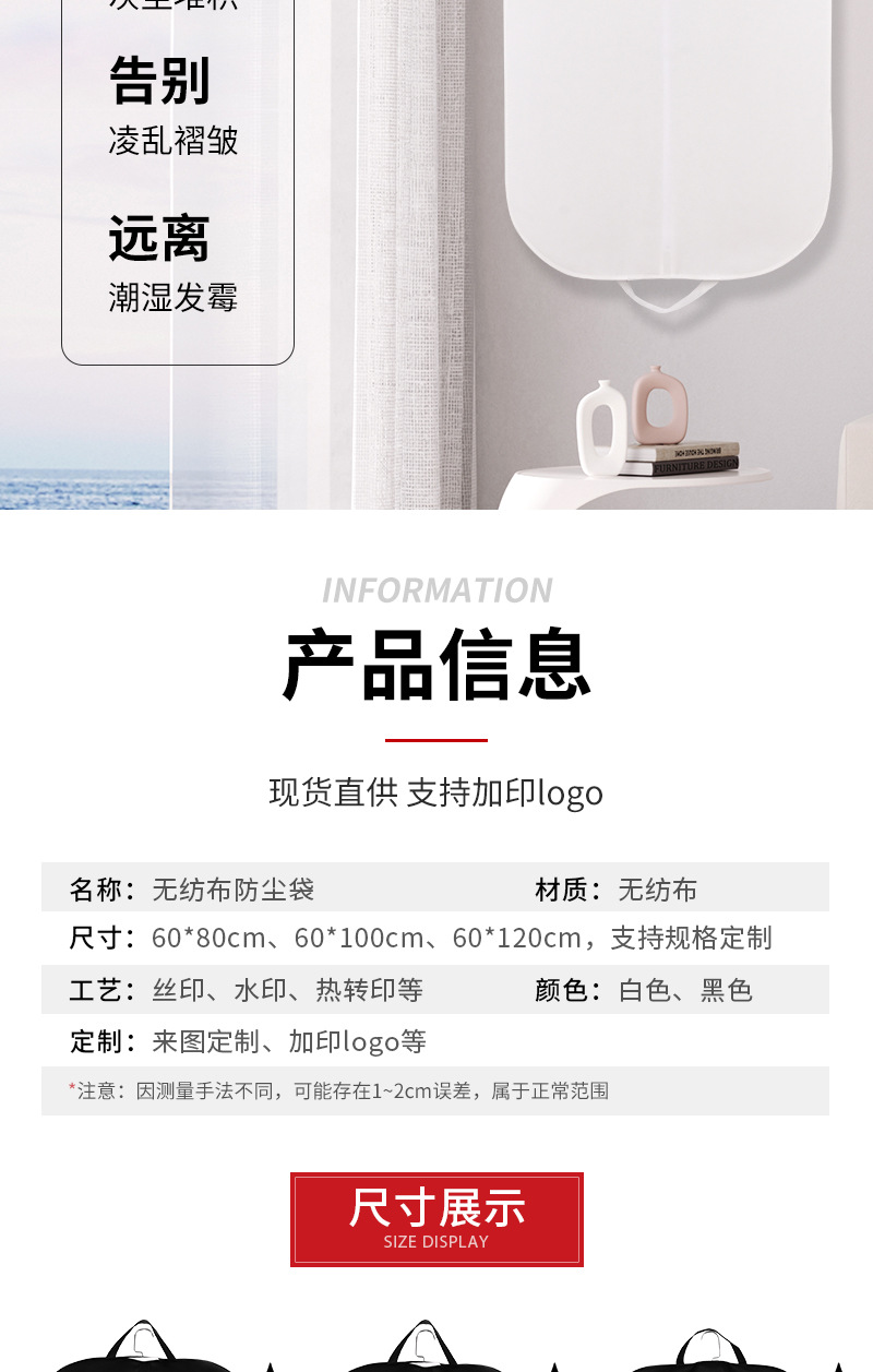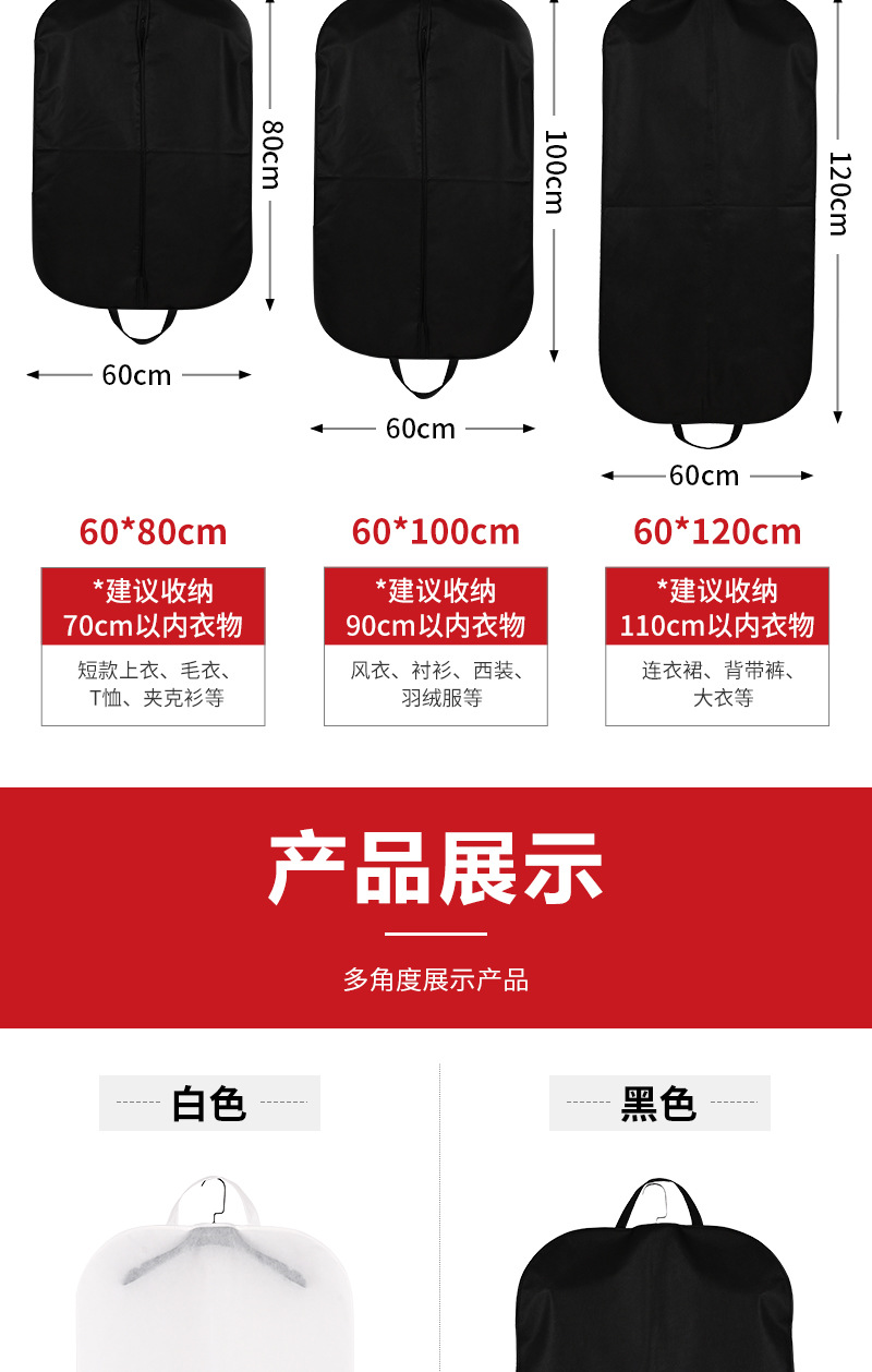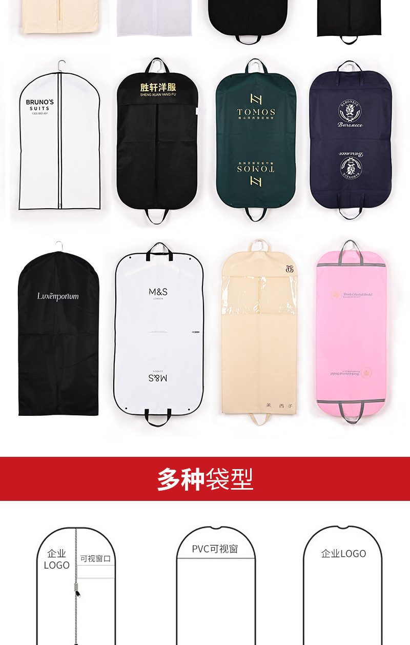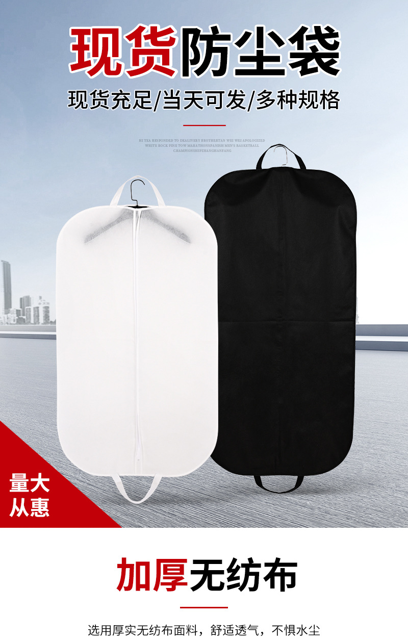 无纺布西装袋现货批发 帽盖手提拉链防尘罩 西装大衣收纳防尘袋