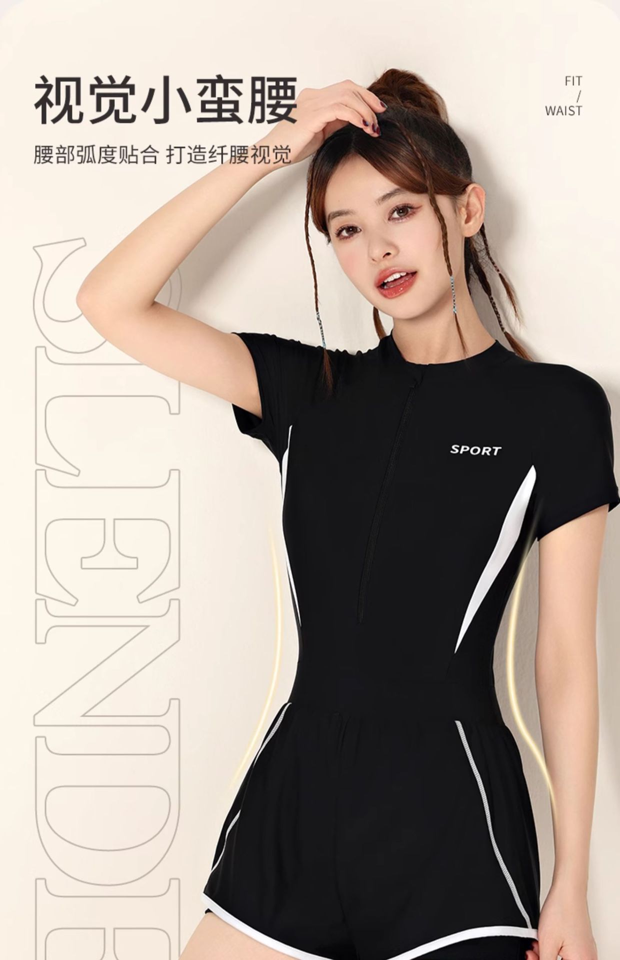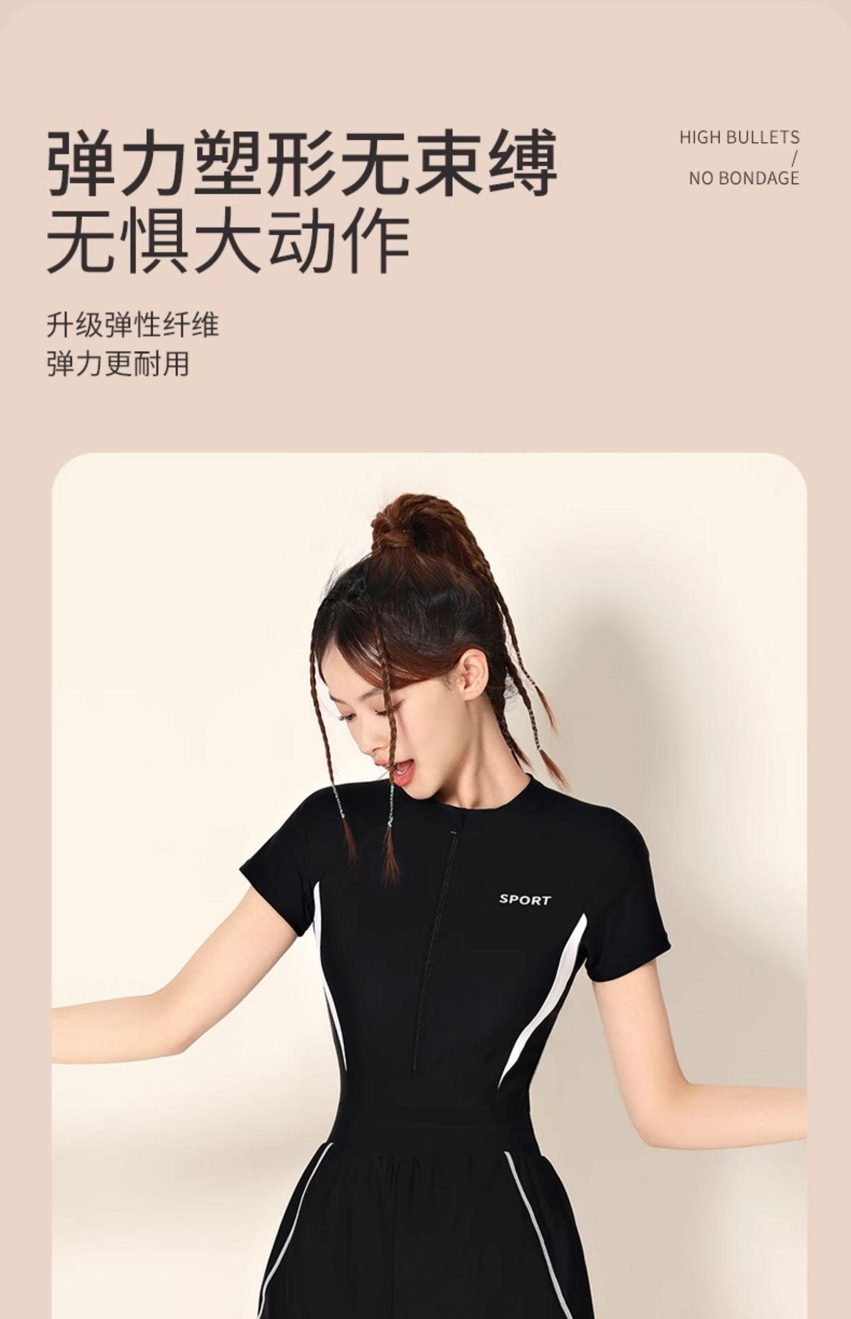 泳衣女款2024新款遮肚显瘦连体平角游泳馆保守泡温泉专业大码泳装