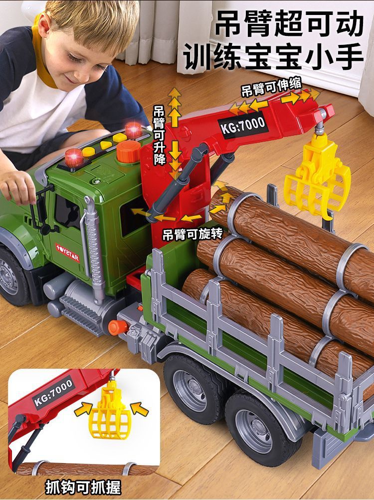 超大号木材运输车玩具抓木机工程车翻斗车男孩吊车起重机玩具车
