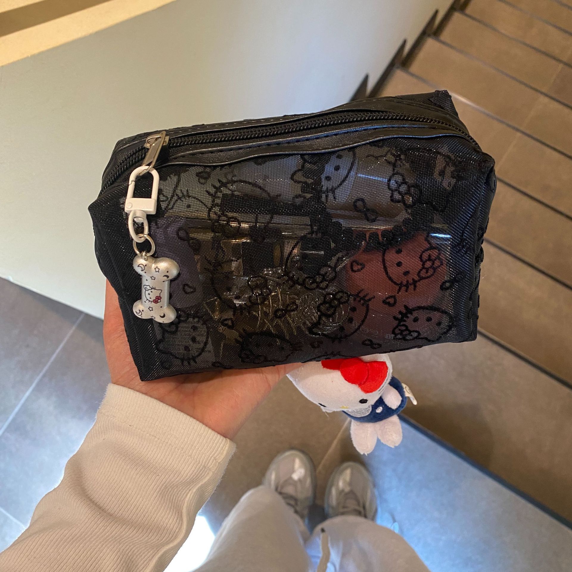 新款韩版is风植绒网纱简约小化妆包彩妆收纳包便携式化妆袋零钱袋