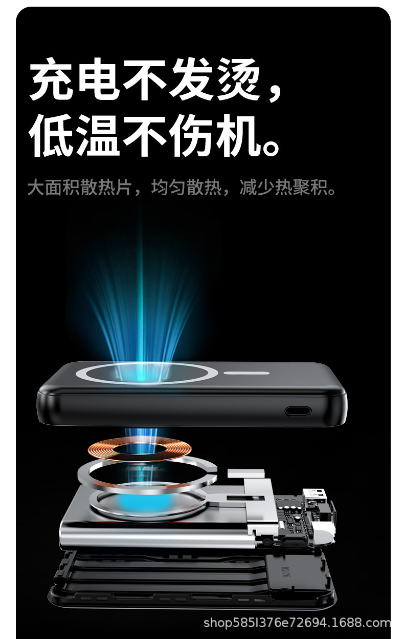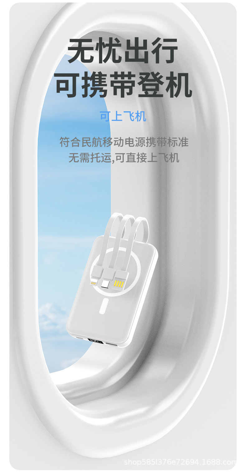 工厂批发磁吸无线快充10000毫安20000自带线充电宝便携移动电源