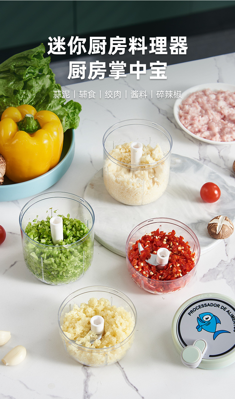 卡通迷你小号手动蒜泥器捣蒜器绞肉机拉虾器蒜蓉切葱姜蒜末搅碎机