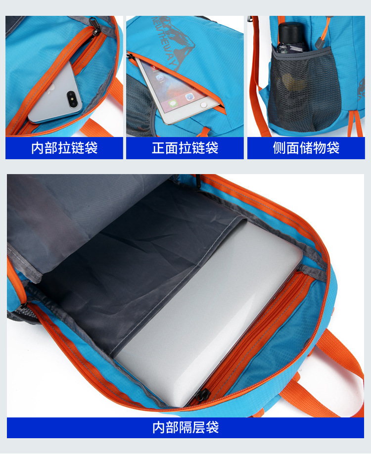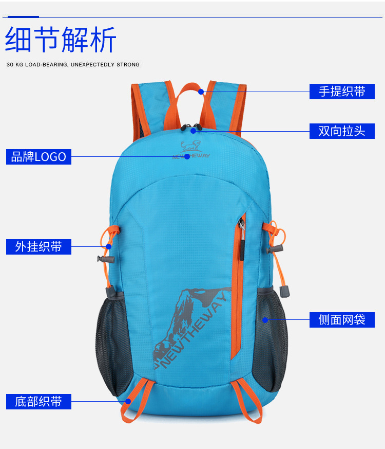 新款大容量户外登山包徒步骑行轻便收纳包旅行速干双肩包运动背包
