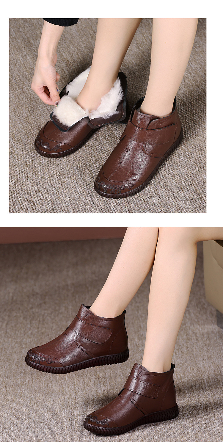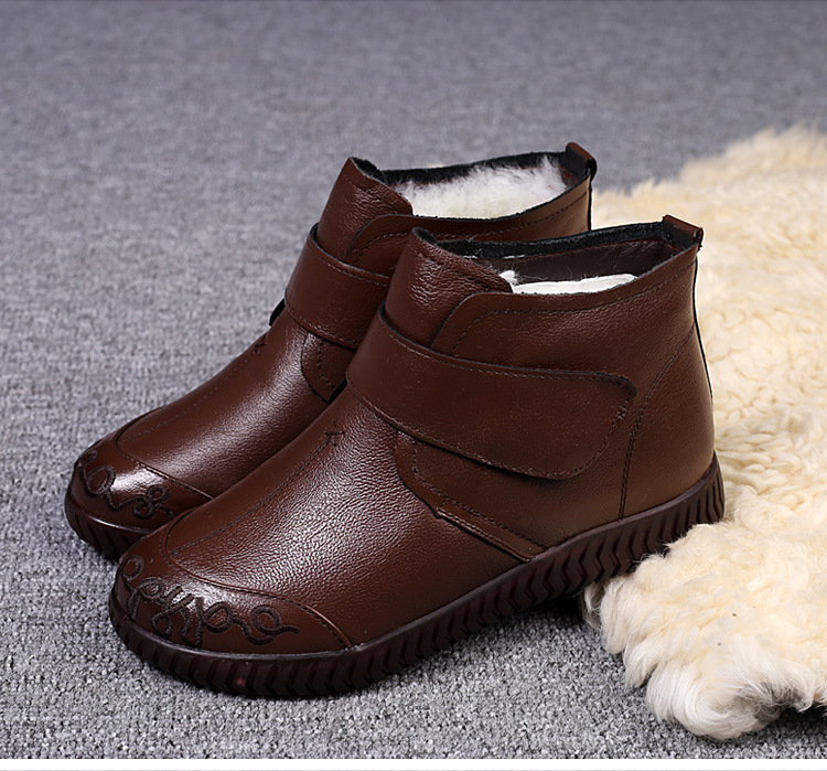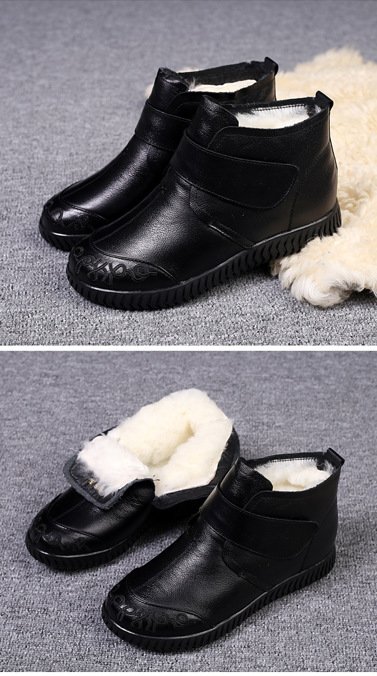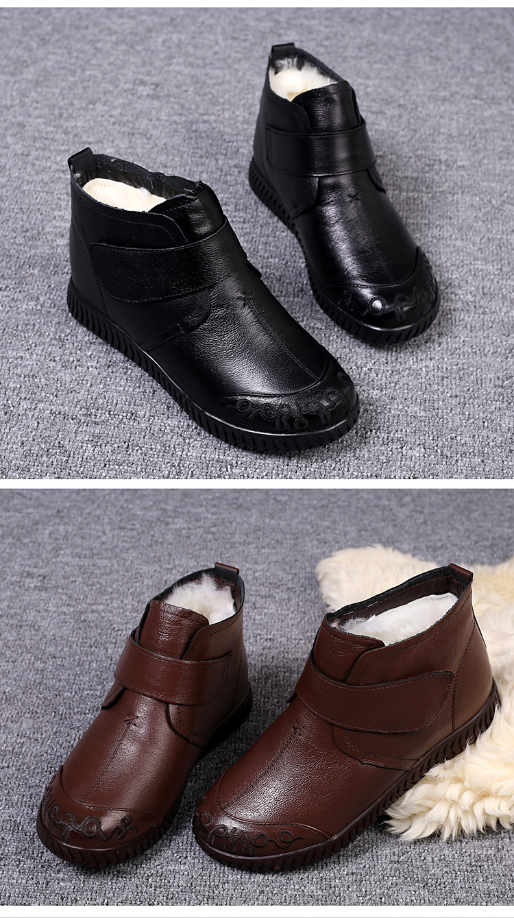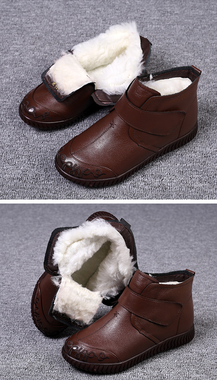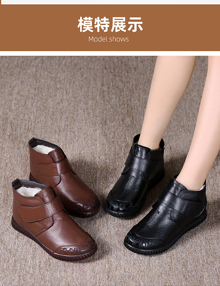 真皮老人棉鞋女秋冬加绒雪地靴软底皮鞋中老年奶奶保暖防滑妈妈鞋