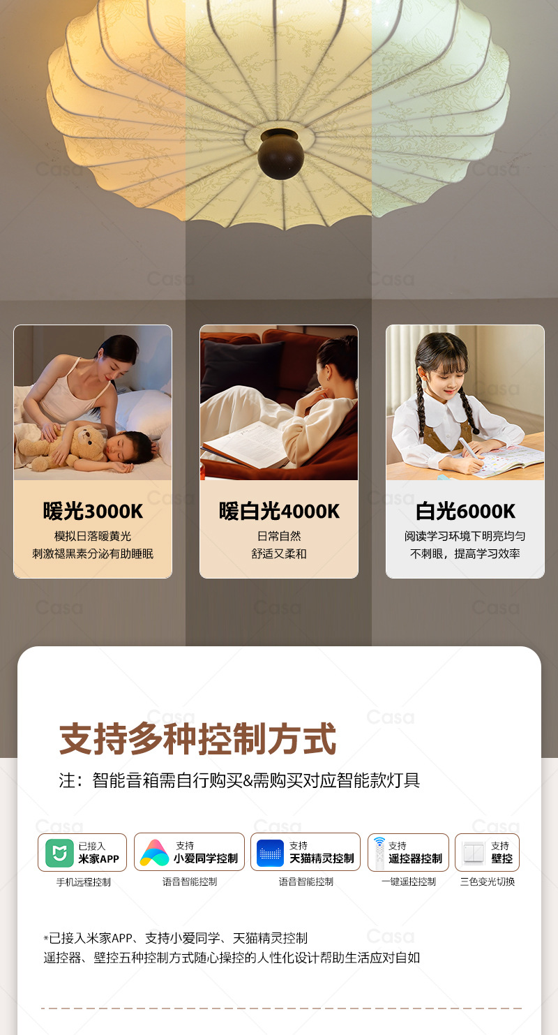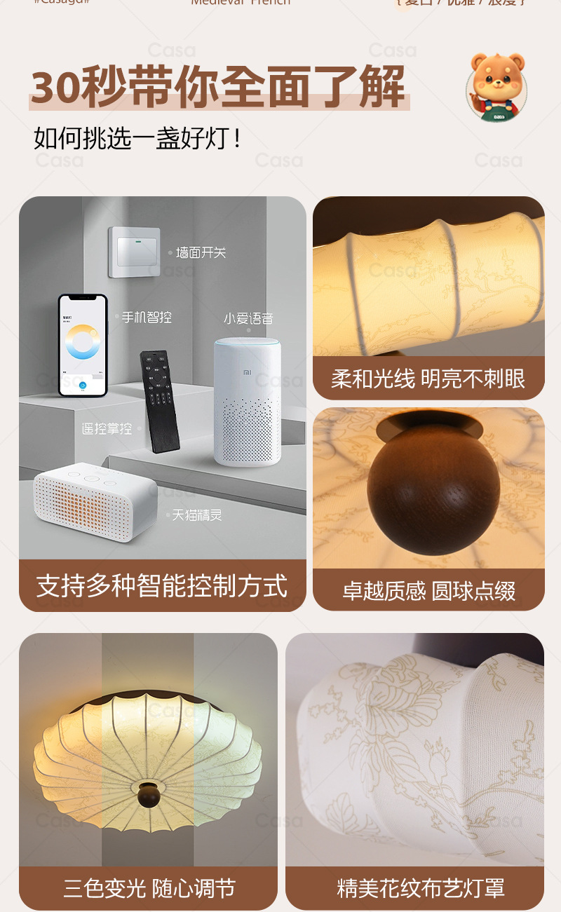 法式复古实木卧室灯吸顶灯中古客厅灯圆形布艺主卧书房灯具casagd
