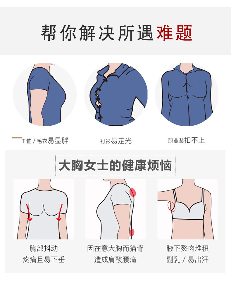 美背内衣大胸显小全罩杯无钢圈防下垂收副乳宽肩带大码无痕文胸女