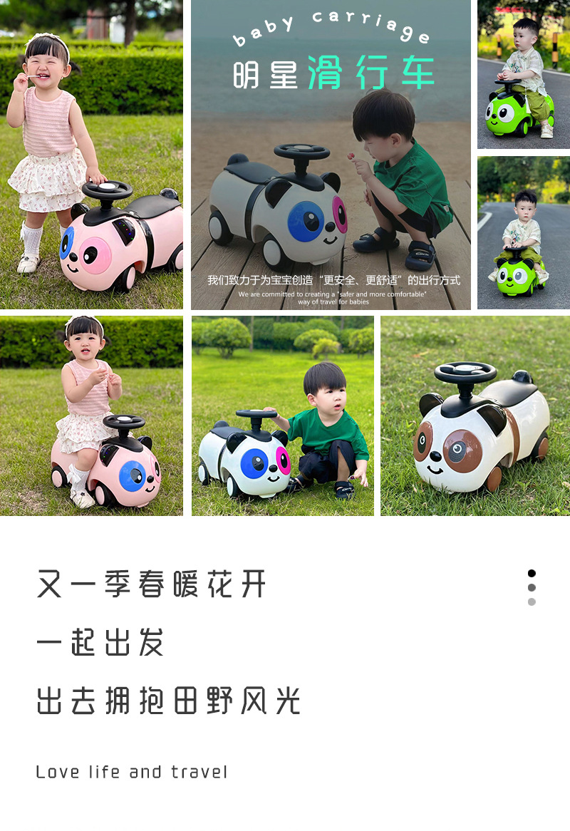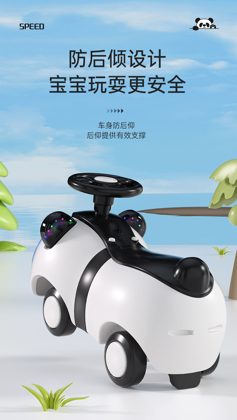 童车音乐扭扭车四轮滑行车熊猫溜溜车儿童玩具车1-5岁宝宝车批发