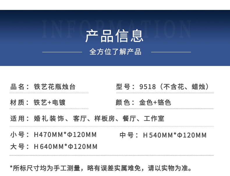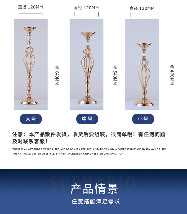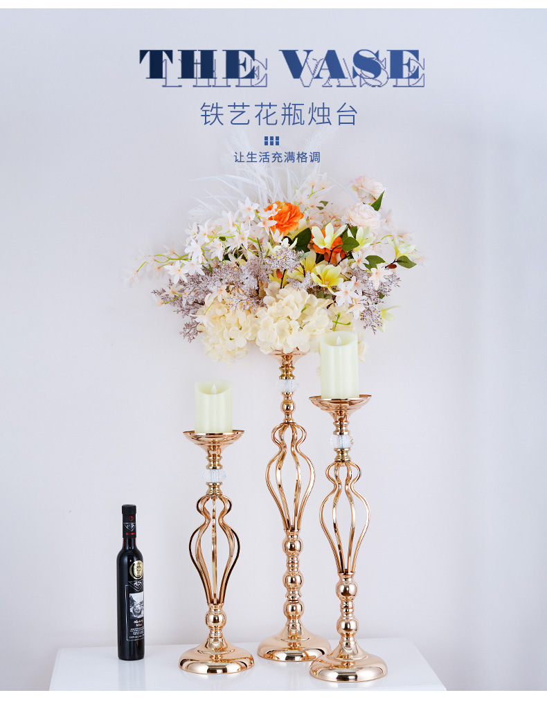 酒店用品婚庆道具路引主桌花器铁艺花架烛台家居插花花瓶节日
