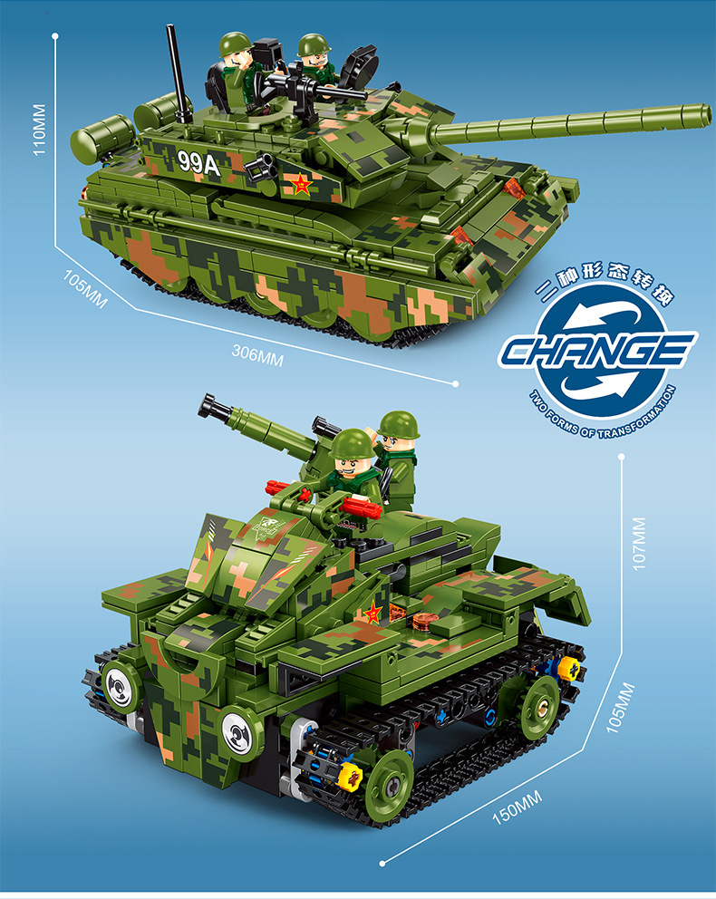 乐玩积木99A坦克模型变形军事模型男孩兼容乐高生日礼物批发玩具