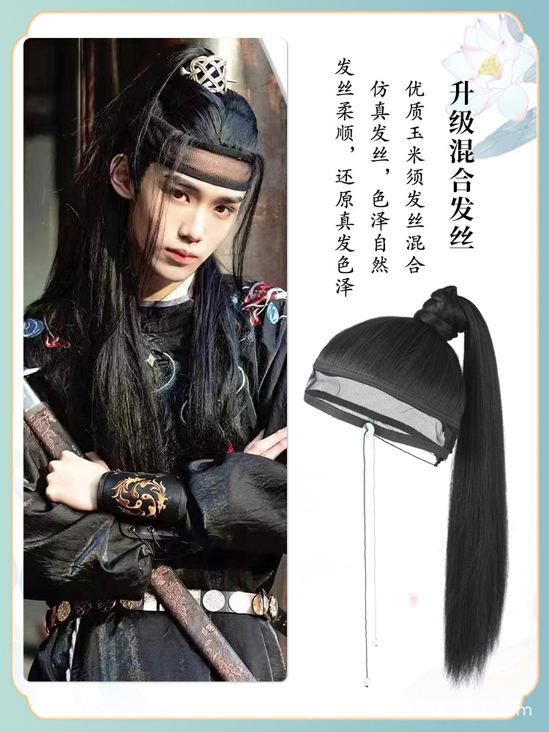 古装汉服一体网纱束发假发男明制网巾抹额懒人女假发套cos全头套