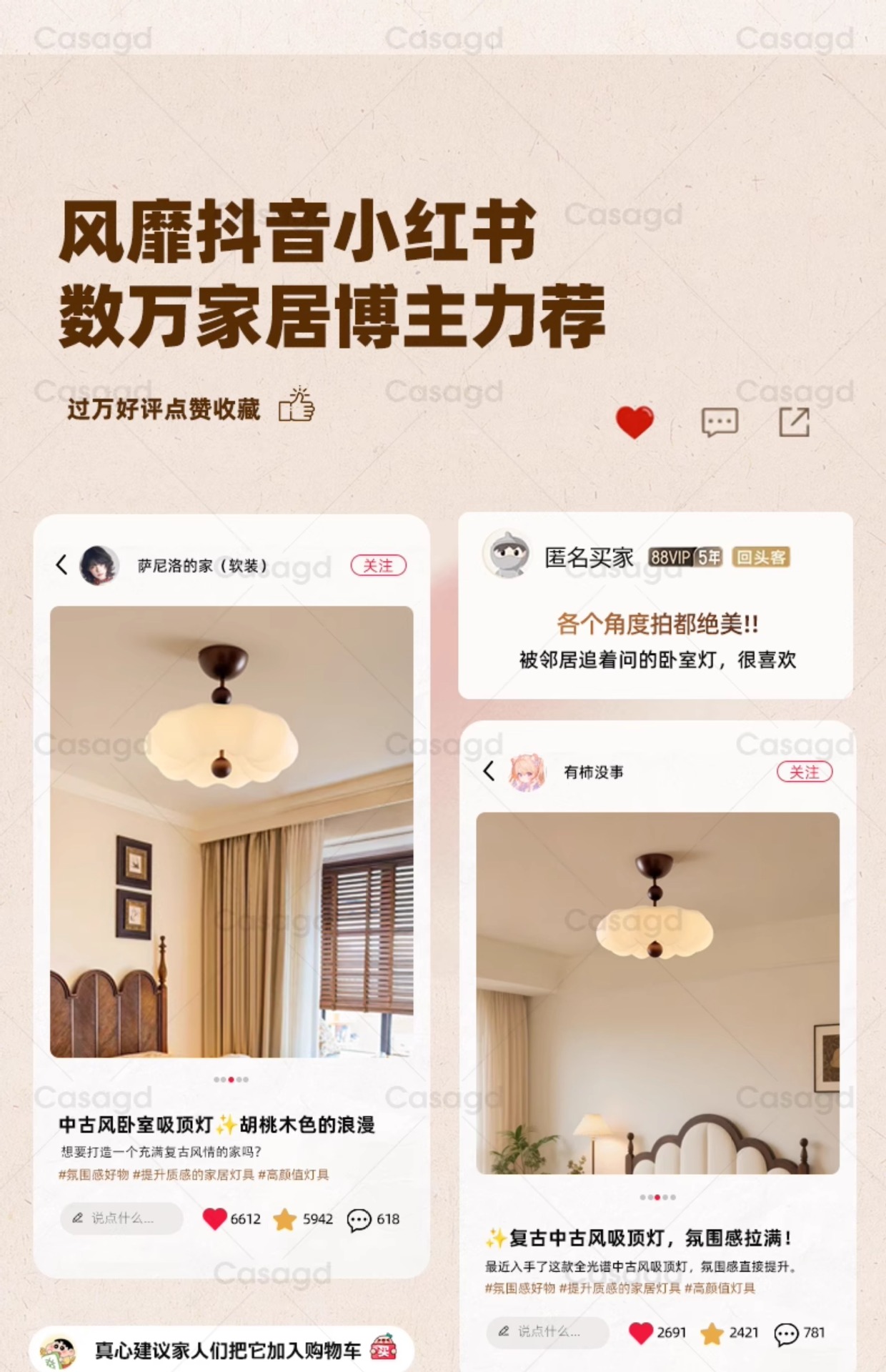中古风复古卧室灯吸顶灯法式奶油风客厅房间艺术南洋风灯具casagd