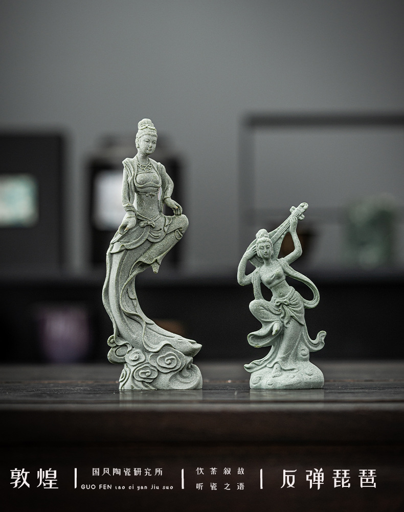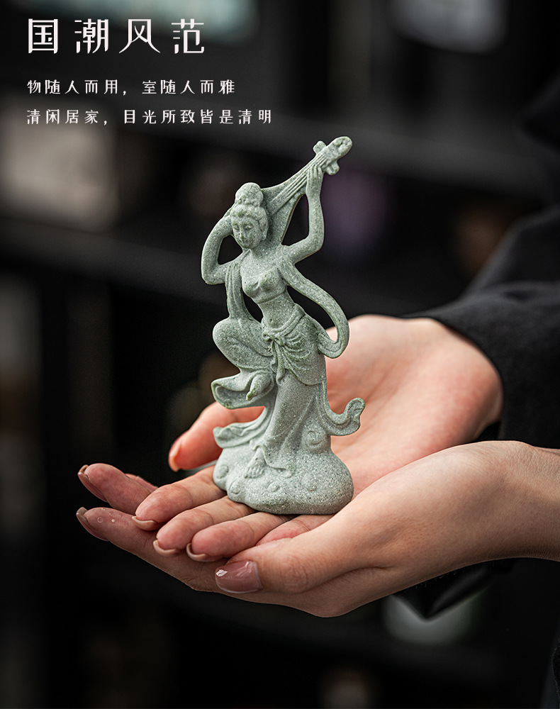 敦煌飞天舞女工艺品鱼缸造景客厅摆件禅意家居装饰新中式摆件茶宠