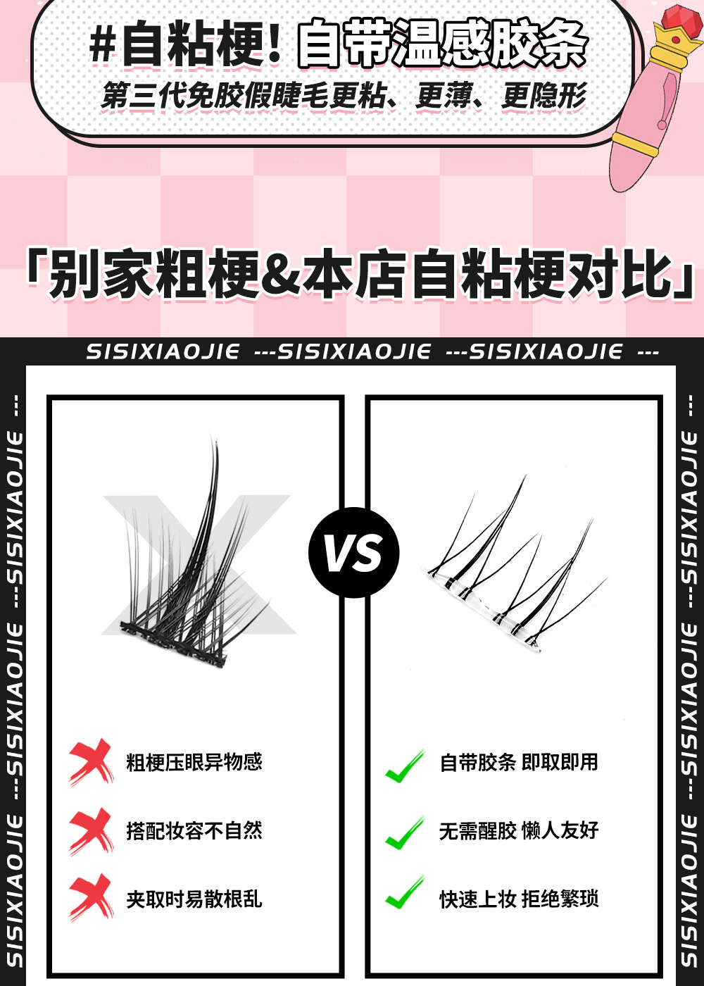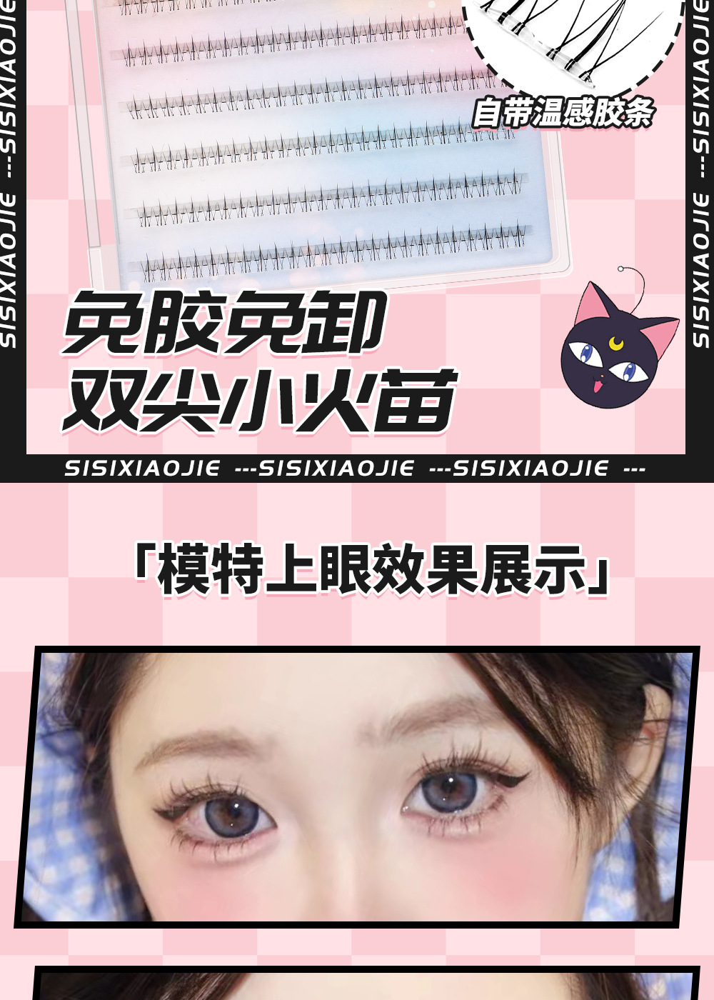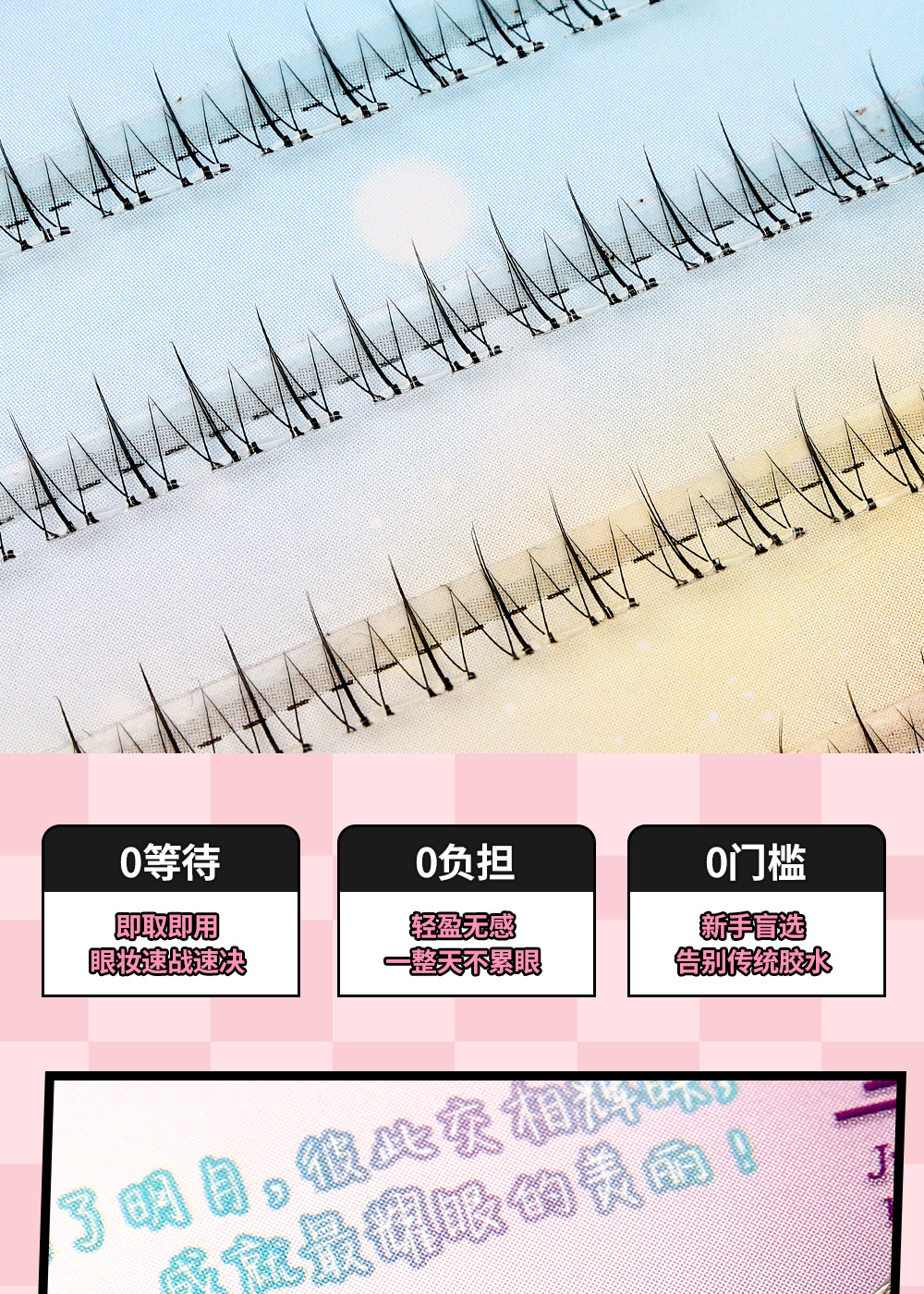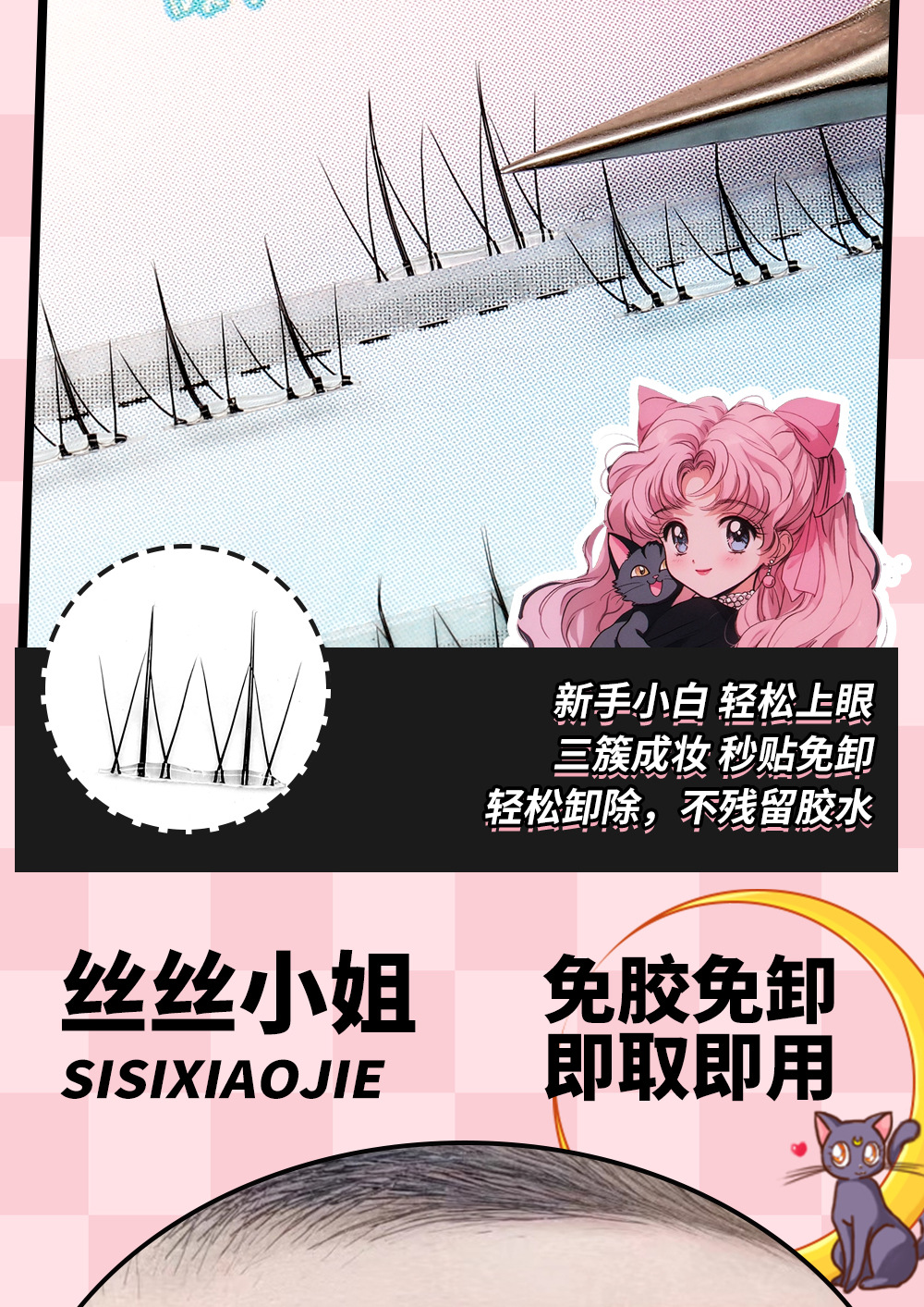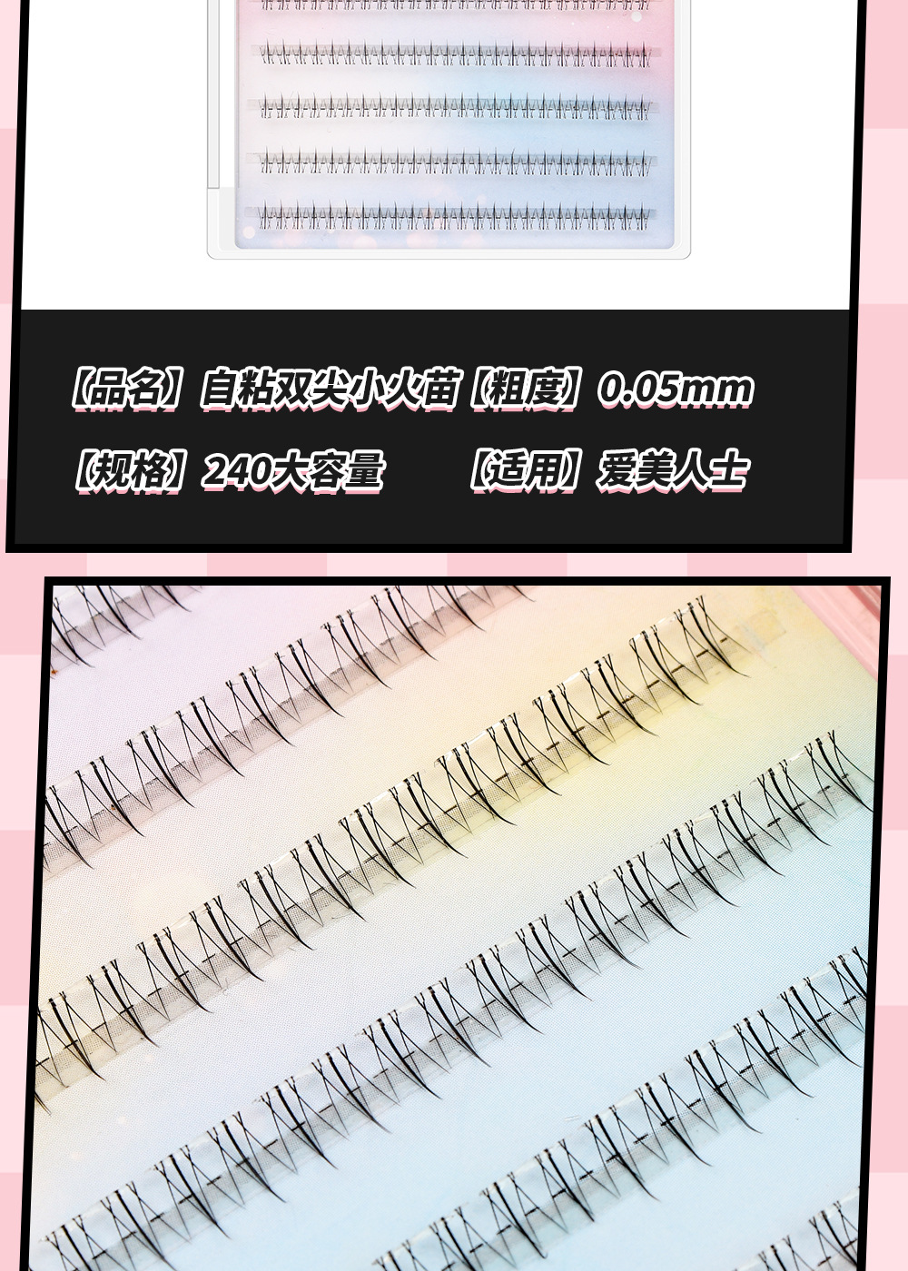 免胶小火苗下睫毛单簇自然分段仿真假睫毛懒人透明梗假睫毛大容量
