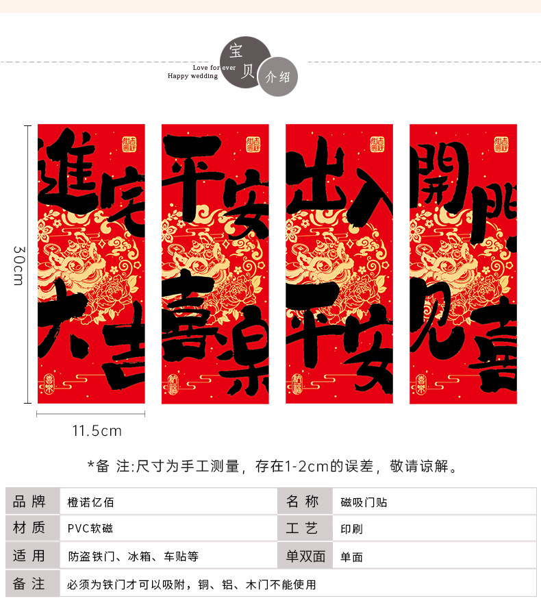 | qiaozhixi magnetic suction door sticker(乔迁之喜磁吸门贴) | USD $0.35 | 18830 piece available |