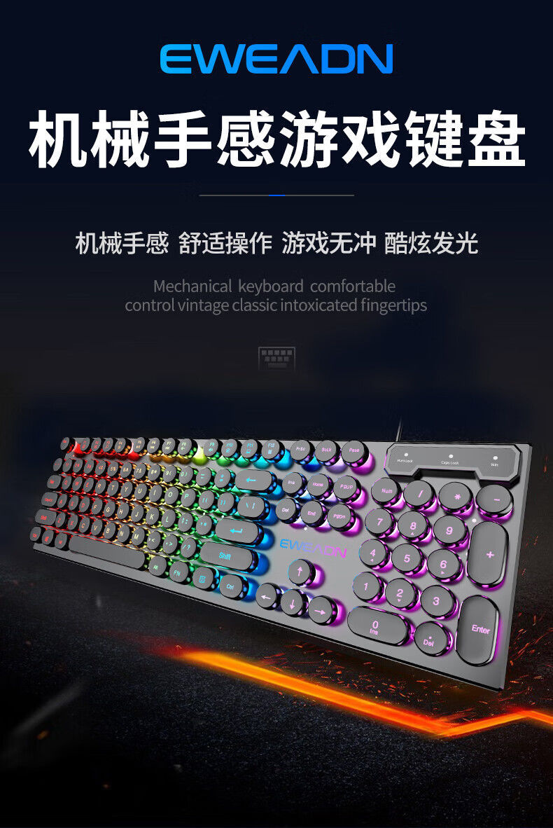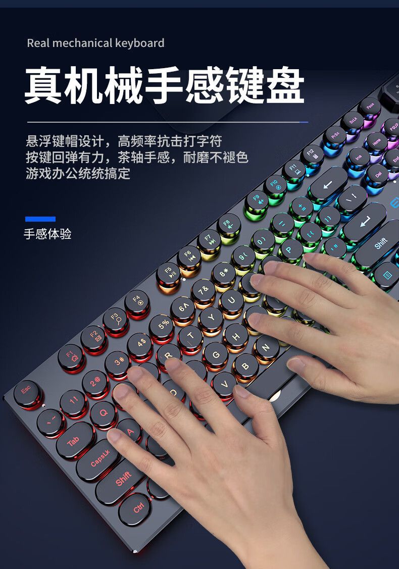 前行者真机械手感朋克键盘鼠标套装复古圆键有线台式电脑办公批发