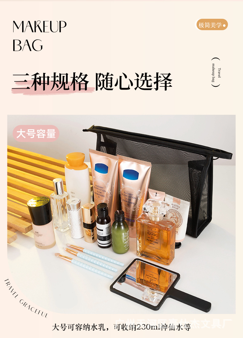 大容量立体透明化妆包尼龙网纱彩妆袋女便携式旅行洗漱收纳包